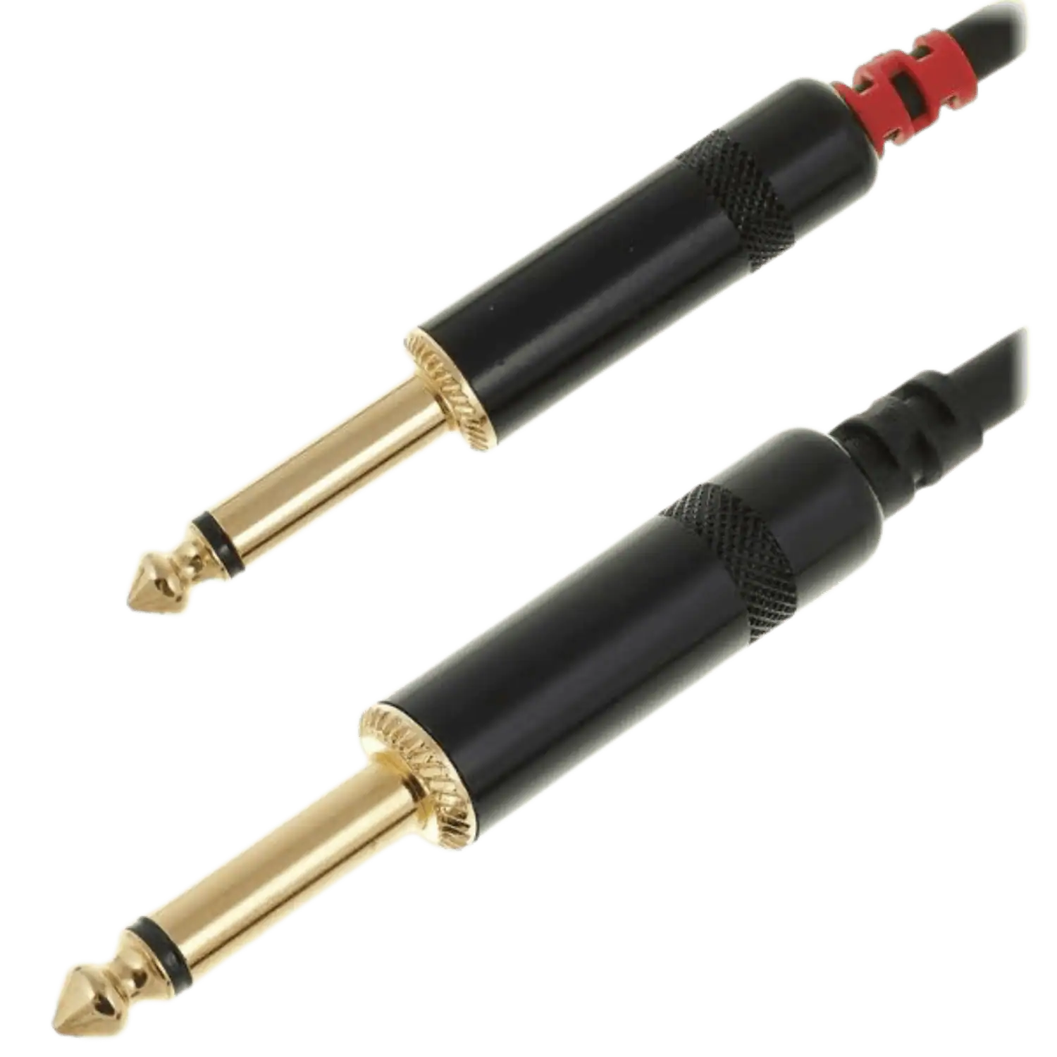 Cavo audio per strumenti professionali con spine in metallo e connettori placcati in oro, dotato di chiusura a strappo.