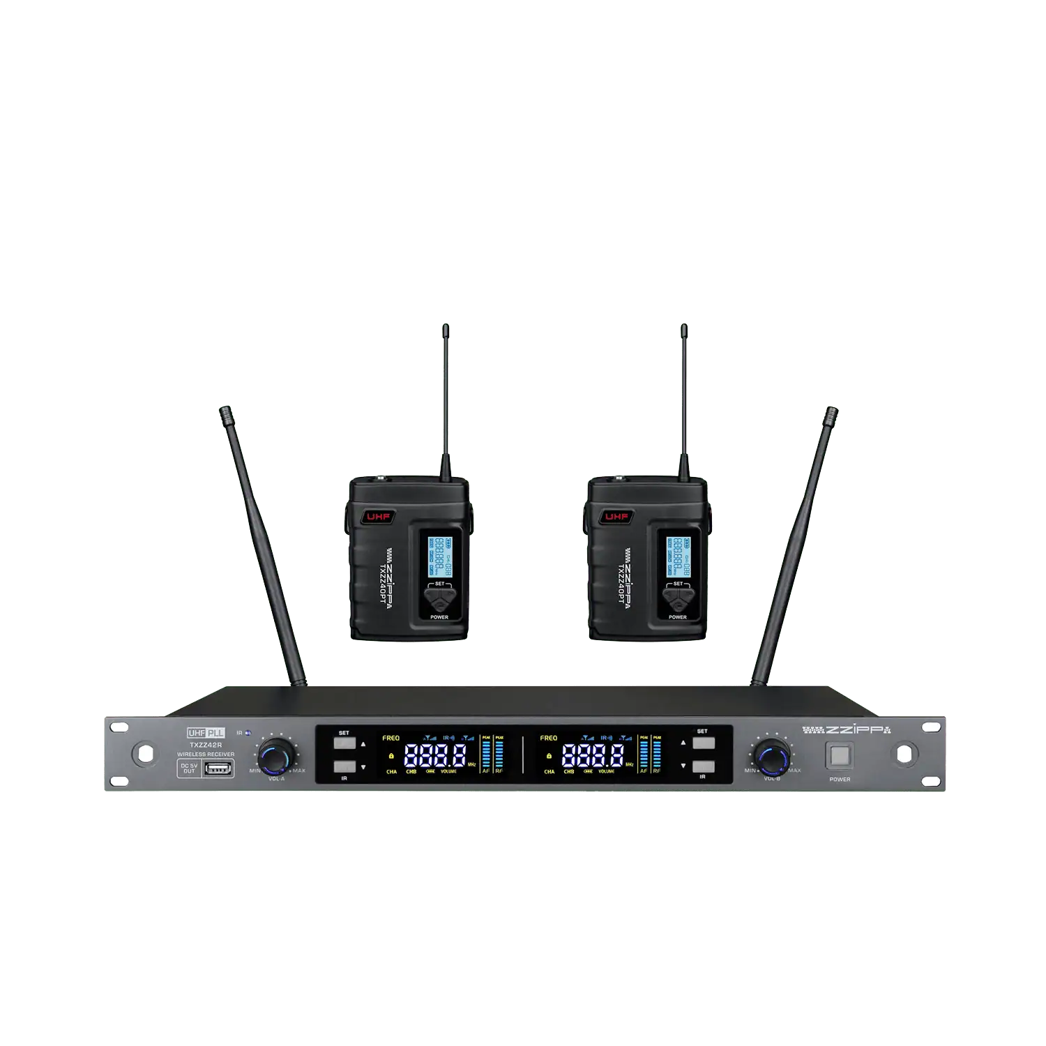 Sistema radiomicrofono ZZIPP TXZZ422 a canali UHF 2×48 CH con 2 bodypack