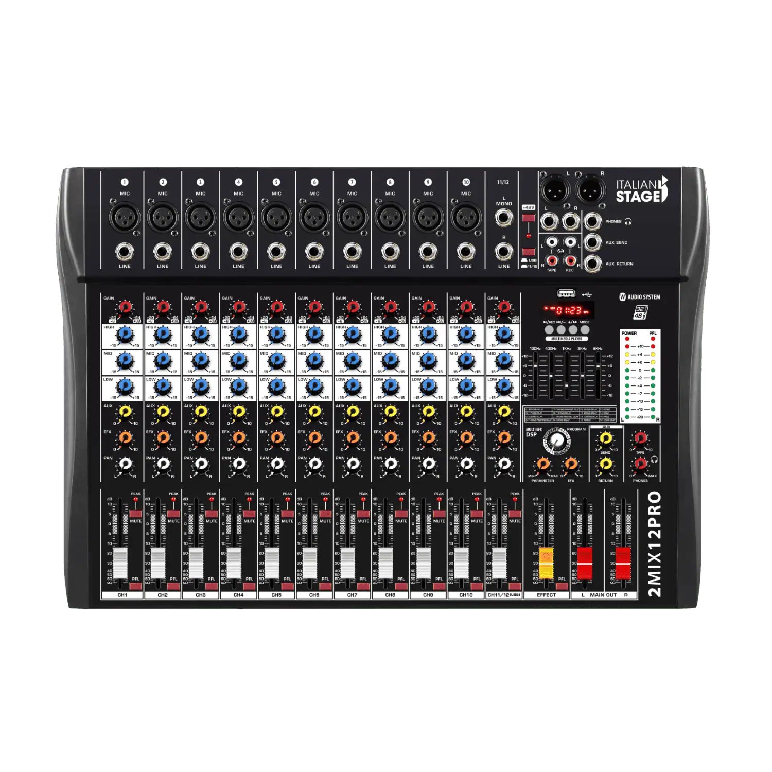 La nuova 2MIX di Italian Stage è una serie di mixer di piccolo formato che offrono tutto ciò di cui il musicista o il semplice appassionato necessitano, oltre ad un suono nitido e potente grazie all’utilizzo di preamplificatori a basso rumore. Dotato di un set di funzioni completo, la serie offre lo streaming audio Bluetooth, oltre alla registrazione e alla riproduzione USB. Dotata di un nuovo processore multieffetto DSP digitale, il mixer funziona anche come interfaccia audio USB 2+2 canali per registrazione o riproduzione DAW. I modelli da 4, 6, 8 e 12 canali comprendono anche audio USB con un registratore e lettore integrato in grado di registrare file MP3 direttamente su unità flash USB. E’ possibile riprodurre file MP3 per basi musicali da accompagnamento, o musica di sottofondo durante le pause dei trattenimenti dal vivo.