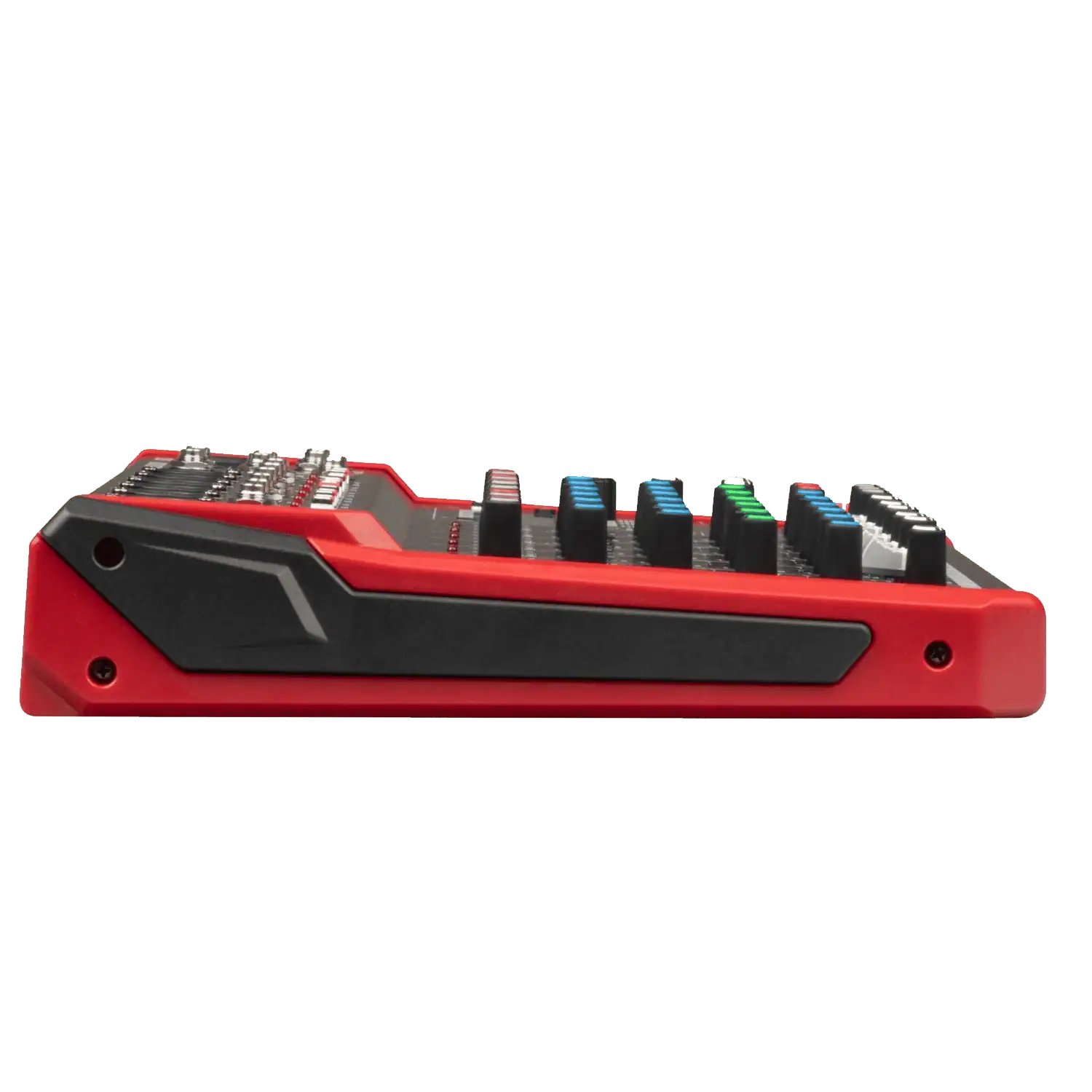 I mixer proel playmix sono disponibili in 3 modelli, con le stesse funzioni di canale e master, ma con 6, 8 e 10 canali rispettivamente. I canali mono mic/line includono pre amplificatori microfonici a basso rumore e ad alta dinamica, equalizzatori a tre bande con MID parametrici e filtro HPF, e fader da 60 mm per un controllo completo del suono. Tutti i modelli sono dotati di un’avanzata sezione digitale con display LCD, che comprende: un DSP integrato a 24 bit di alta qualità, con 100 preset da studio di effetti singoli e combinati, un’interfaccia audio USB stereo a 48 KHz per la riproduzione/registrazione tramite connessione al PC, un lettore MP3 integrato dalla chiave di memoria USB o dall’interfaccia bluetooth, registrazione stereo su chiave di memoria USB. I mixer sono alloggiati in robuste scocche che garantiscono una lunga durata e offrono un suono pulito e preciso per una vasta gamma di applicazioni.
