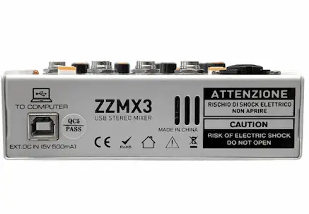 - Mixer a 3 canali con scheda audio USB integrata.