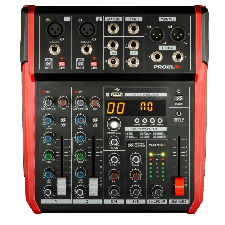 Mixer compatto PROEL PLAYMIX6 a 6 canali con lettore MP3 e Bluetooth