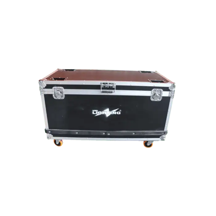 Baule Flight case vuoto rigido e resistente ideale per il trasporto di 10 Pannelli LED WALL. Aprendo il baule avremo un ampio spazio per il trasporto e protezione per lo spostamento. Il baule è realizzato con materiale resistente con bordi e rifiniture in alluminio, con maniglie laterali, con ruote con leva freno per il blocco baule ed apertura e chiusura a farfalla.