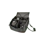 Borsa per il trasporto in tela rinforzata. Dotata di una robusta maniglia per il trasporto, una tasca frontale porta accessori, un’imbottitura in spugna, separatori in velcro e una pratica e robusta chiusura zip doppia. Ideale per teste mobili e faretti