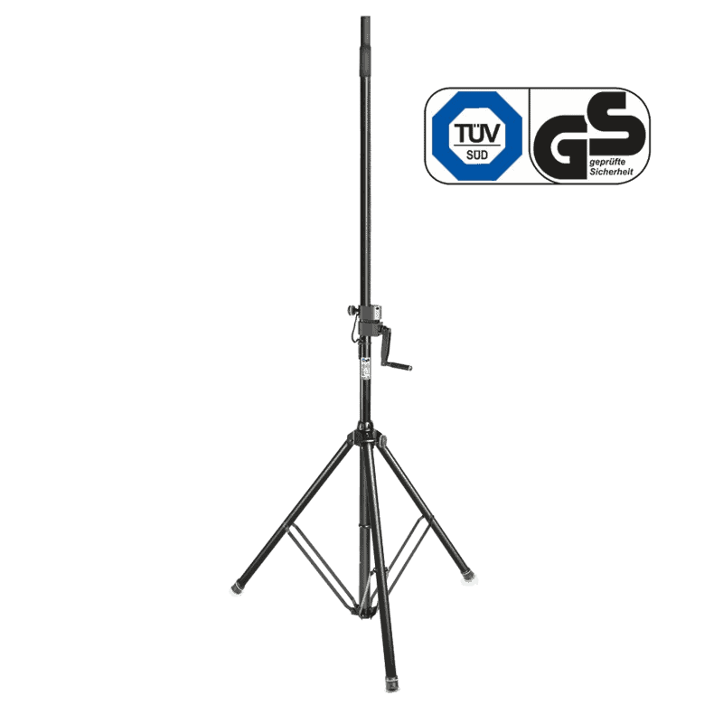 Il modello SWU400T è un supporto per luci con regolazione dell’altezza tramite manovella. Grazie alla sua elevata capacità di carico di 85 kg, alla traversa rimovibile e al tubo superiore con diametro di 35 mm, questo stativo è perfetto anche come supporto per casse. La stabile struttura in acciaio ha un rivestimento a polvere nero, mentre i tubi superiori e le prolunghe sono zincati. Un piedino di livellamento assicura una buona stabilità anche su superfici irregolari. Tutti gli elementi regolabili sono fissati con viti ad aletta, e con perni elastici.