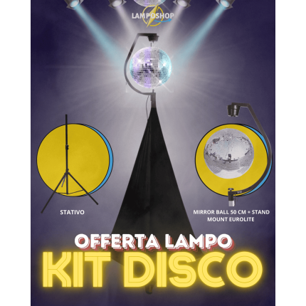 Kit Disco completo con supporto sfera mirrorball stativo con copertura offerta Lampo