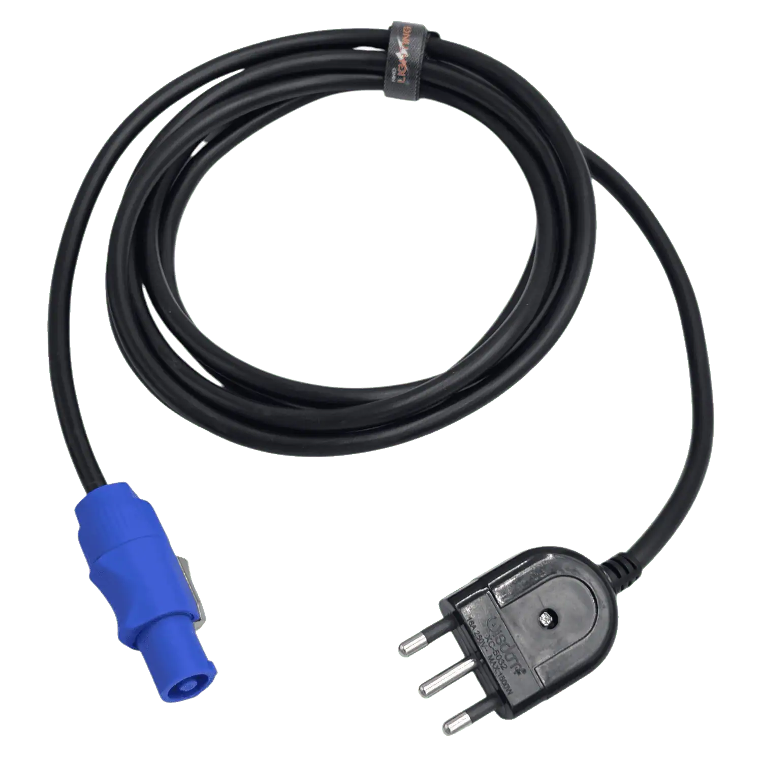 Cavo di alimentazione con presa di alimentazione civile Italiana e ingresso PowerCon per luci DJ e del palcoscenico lunghezza di 3 m. Ideale per teste mobili come ad esempio: testa mobile LED wash, beam, spot e così via. È un dispositivo plug-in e può quindi essere collegato e scollegato sotto carico e sotto tensione. Il cavo in gomma risulta flessibile e resistente.