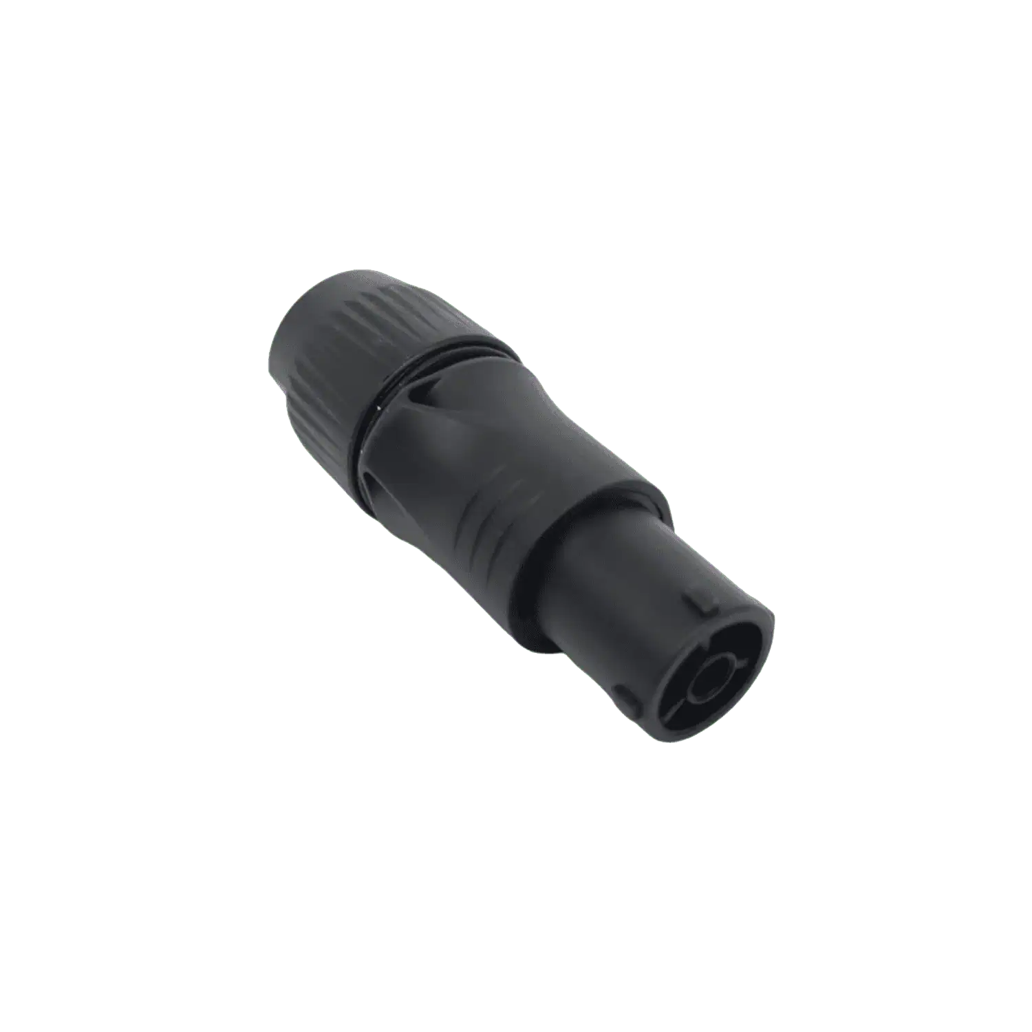 Connettore spina volante con morsetti di serraggio conduttori, può essere montato su cavi di qualsiasi tipologia, fino a 2,5 mm x 12. Il connettore viene utilizzato per l’ingresso dell’alimentazione e supporta un amperaggio di massimo di 16A. Il connettore è realizzato con plastiche solide e durature e con dispositivo di bloccaggio. A tenuta d’acqua quindi ideale per applicazioni esterne, oltretutto inseribile e disinseribile sotto carico. Corpo in poliammide antiurto interamente di colore nero e contatti nickelati.