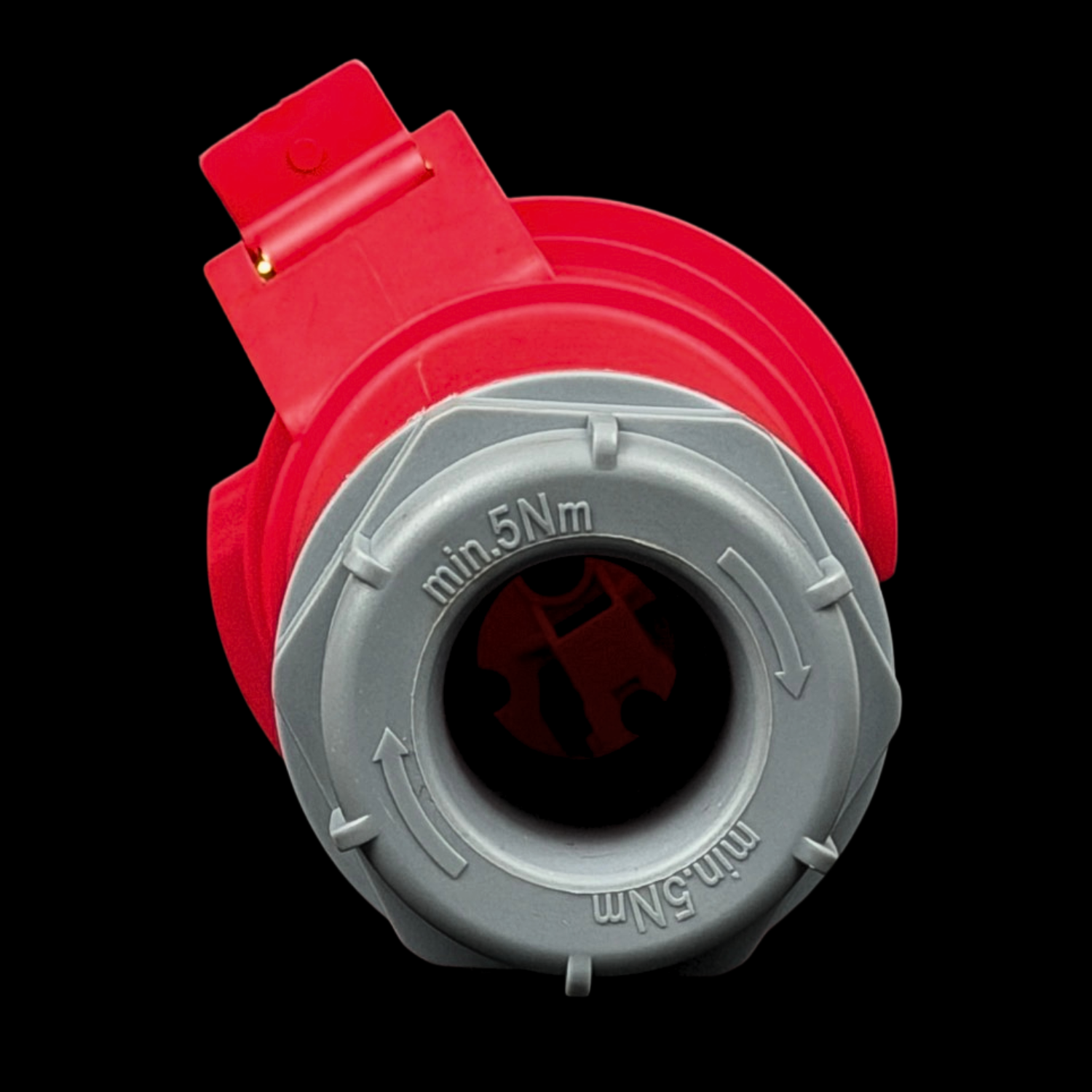 Il connettore è dotato di sportellino di protezione integrato, utile per prevenire l’ingresso di polvere e sporco quando la presa non è in uso. La ghiera di serraggio consente un bloccaggio sicuro del cavo, riducendo il rischio di disconnessioni accidentali e aumentando la sicurezza operativa.