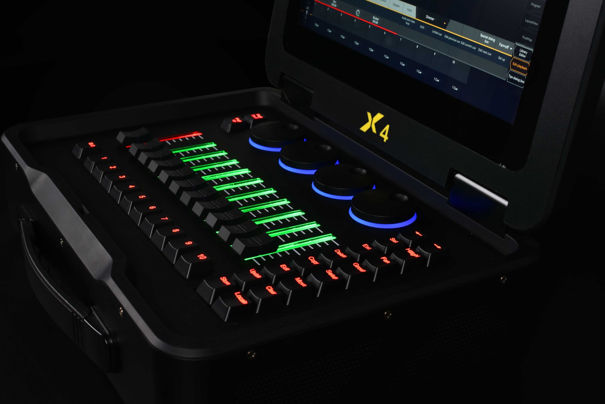 Baton X4 Console DMX Professionale con Design Flip Open e Schermo Touch 15.6″ HD, Sistema Anti-Blackout UPS Integrato, Fino a 8192 Canali via Art-Net, 15 Fader RGB Personalizzabili e Controllo per 3000 Fixture – La Soluzione All-in-One con Assistenza H24 in Italiano per Light Designer