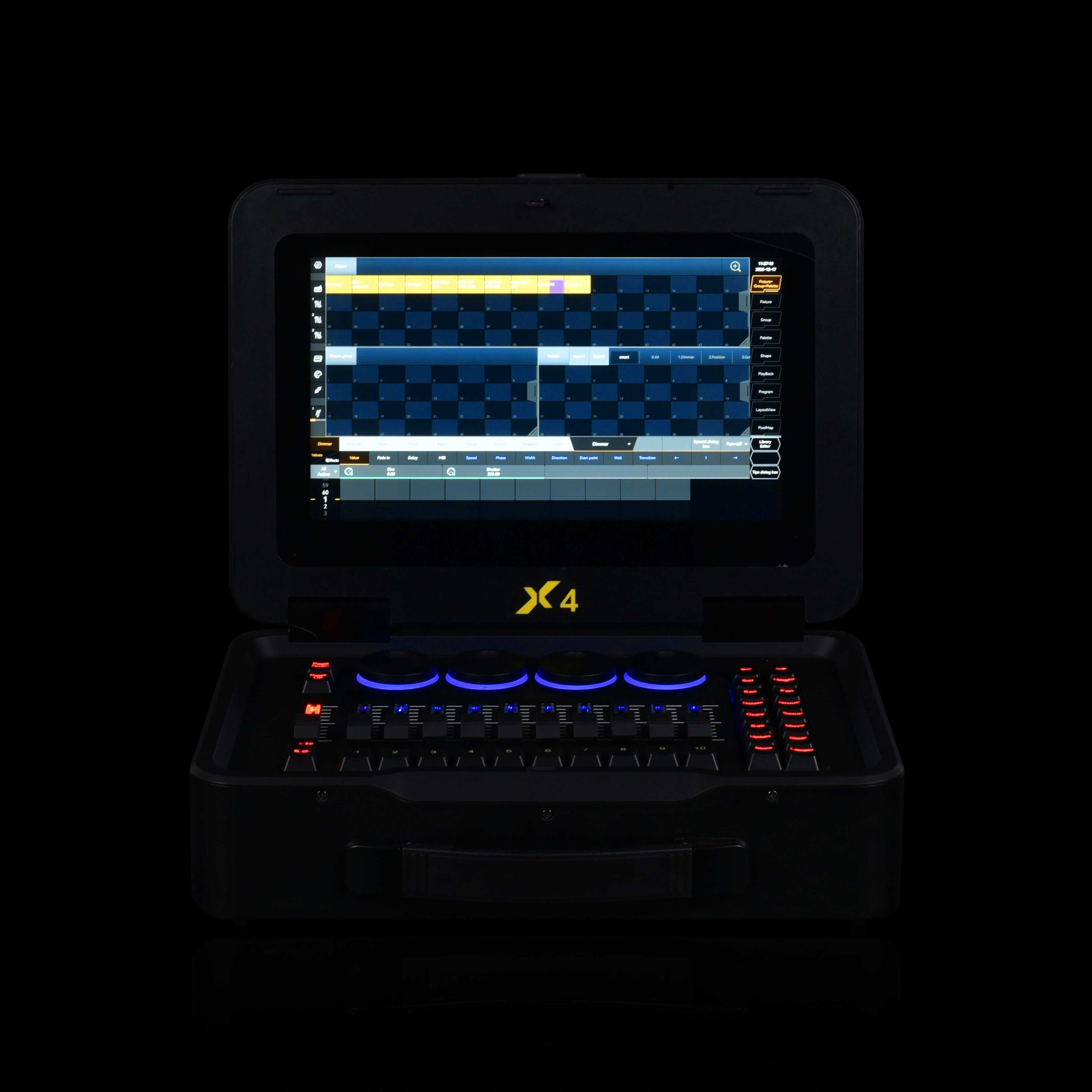 Baton X4 Console DMX Professionale Flip Open Schermo 15.6″ Touch, 8192 Canali Art-Net & UPS Integrato