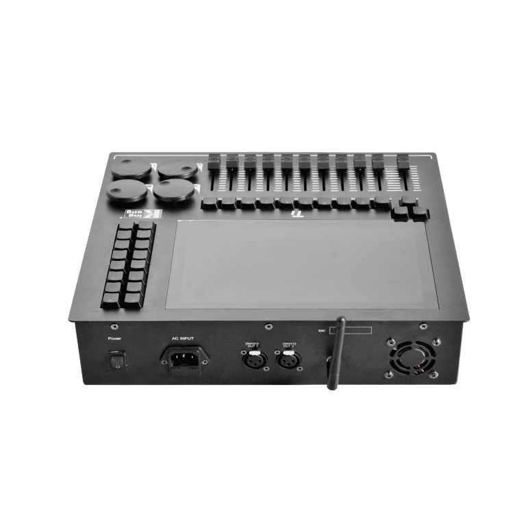 Baton T1  centralina DMX 512 compatta e potente con sistema Linux. 1024 canali fisici (4096 via Art-Net), schermo touch HD e gestione fino a 900 scene. Ideale per light designer, include assistenza H24 in italiano