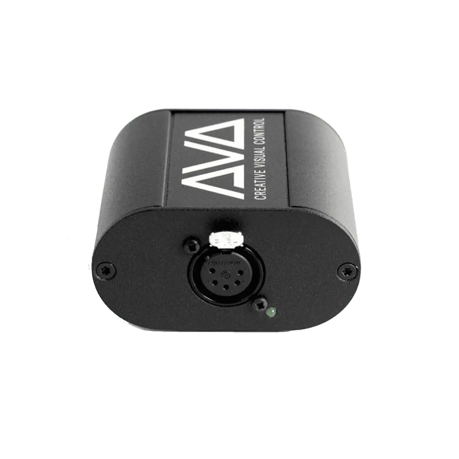 La connessione USB permette sia la trasmissione dati sia l’alimentazione del dispositivo, riducendo il numero di cavi necessari durante l’installazione. L’uscita DMX utilizza un connettore Neutrik XLR a 5 poli otticamente isolato, assicurando stabilità del segnale, protezione elettrica e affidabilità anche in ambienti professionali complessi.