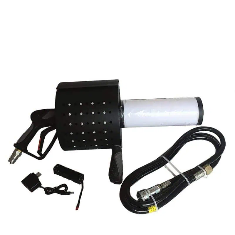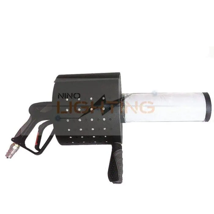 Pistola getto aria compressa co2 per coriandoli LED. Rendi il tuo evento particolare con la Pistola co2 all’interno con colori RGB creando magici effetti colorati. La Pistola può sparare aria compressa fino a 6-8 metri. La colonna di gas nube bianca vi darà risalto in mezzo alla folla, sia in pista che su un palco. La pistola va connessa a una bombola di CO2  servendosi di un tubo flessibile in grado di resistere all’alta pressione. È facile da usare grazie al palmo per un’ impugnatura più solida. La nostra Pistola è perfettamente adatta in concerti, palcoscenici, club, Discoteche, ecc.