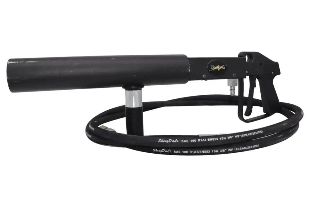 La pistola ice gun per C02 consente di produrre una spessa nube di fumo usando anidride carbonica a pressione elevata per rendere ogni spettacolo ancora più sorprendente. La nostra Pistola Ice gun è realizzata con prodotti eccellenti. La pistola dal design accattivante è di facile utilizzo e particolarmente adatta per Dj e ballerini. La colonna di gas nube bianca vi darà risalto in mezzo alla folla, sia in pista che su un palco. La pistola va connessa a una bombola di CO2 servendosi di un tubo flessibile in grado di resistere all’alta pressione.