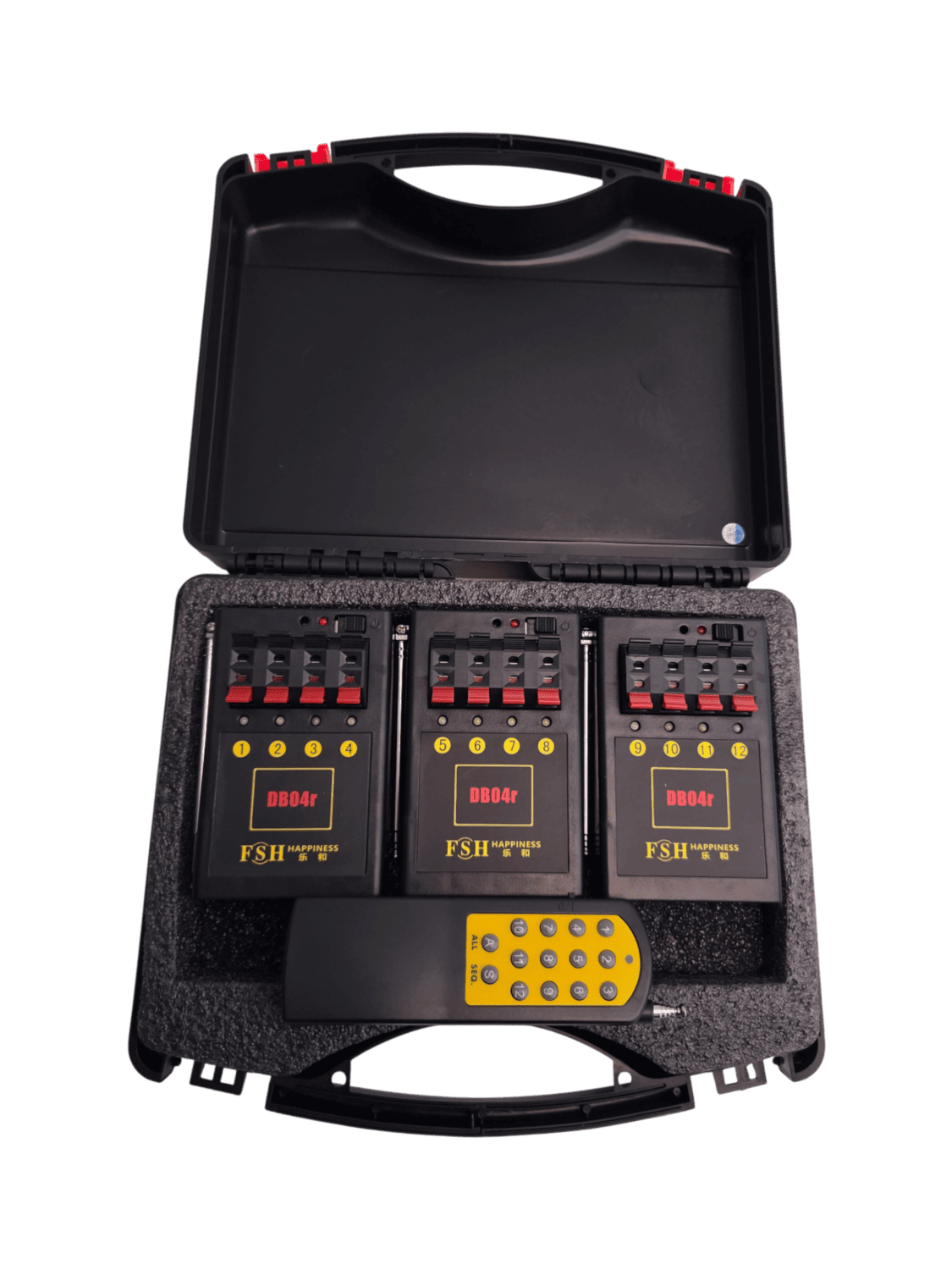 Kit 3 Accenditori Pirotecnici Con Telecomando Wireless A Distanza E Valigetta Firing System DB04R Controllo fino a 12 Canali