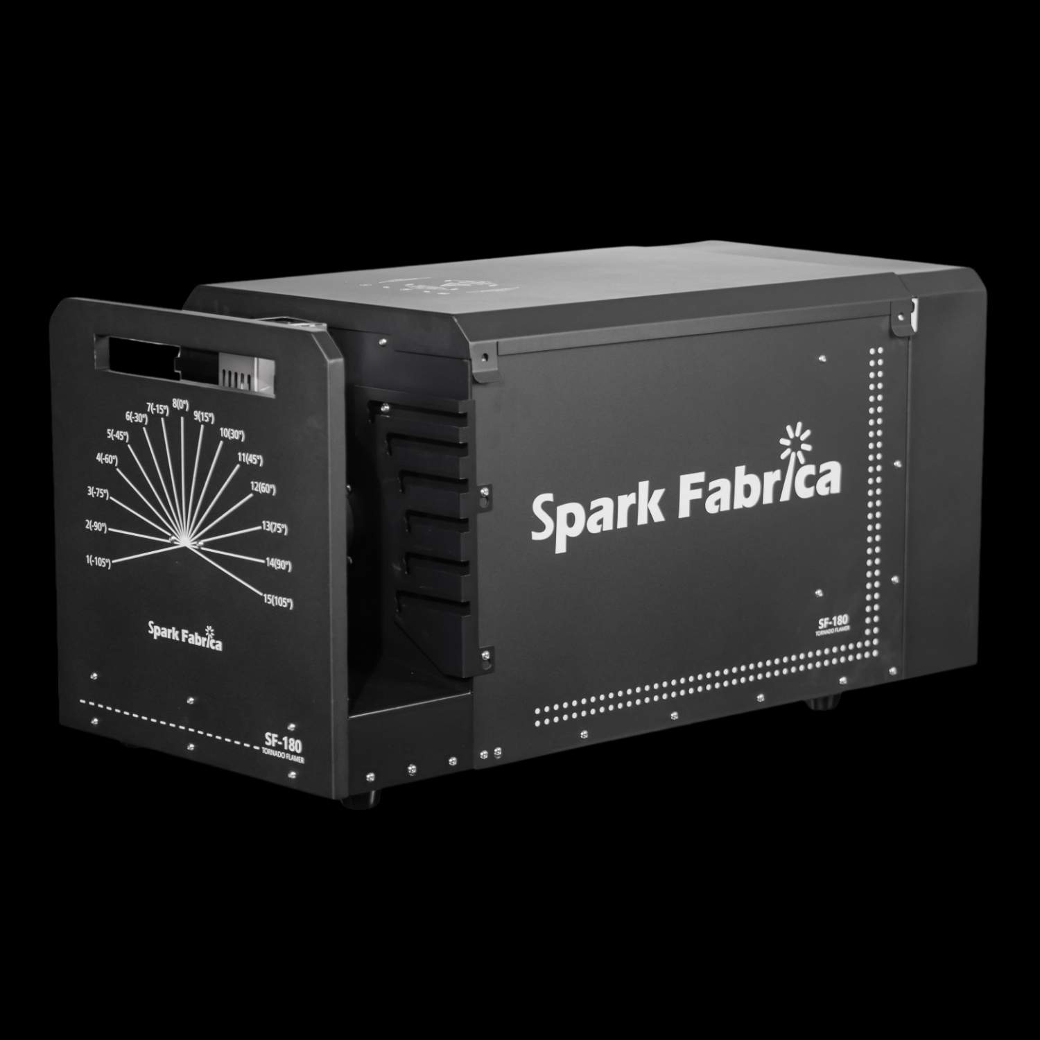 La SF-180 è costruita con involucro in acciaio inox, garantendo resistenza, durabilità e protezione dagli agenti esterni, mentre il flight case incluso assicura il trasporto sicuro della macchina tra diversi eventi o sedi. Con un peso netto di 32 kg e un peso lordo di 50 kg, la macchina è robusta ma facilmente gestibile da professionisti esperti. Le dimensioni compatte (630 x 363 x 373 mm) rendono la SF-180 adatta all’integrazione in scenografie complesse senza occupare eccessivo spazio sul palco.