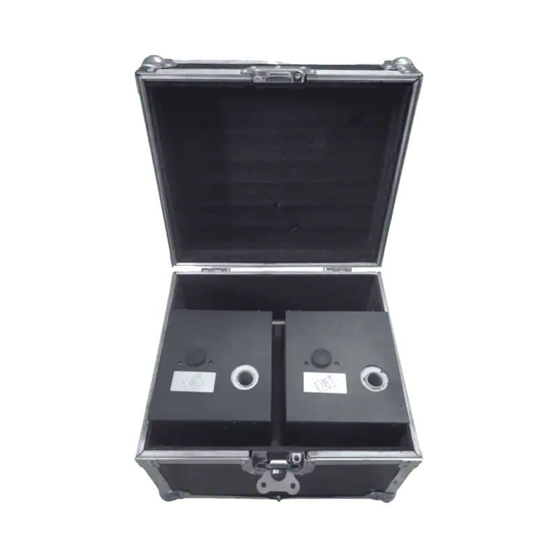 Con un peso di 17 kg e dimensioni compatte (29 × 31 × 31 cm), la macchina è facile da trasportare, installare e integrare in setup scenici professionali, rack da spettacolo e strutture modulari. Le griglie di aerazione ottimizzate garantiscono un raffreddamento efficace e un funzionamento stabile anche in condizioni di lavoro intensivo.
