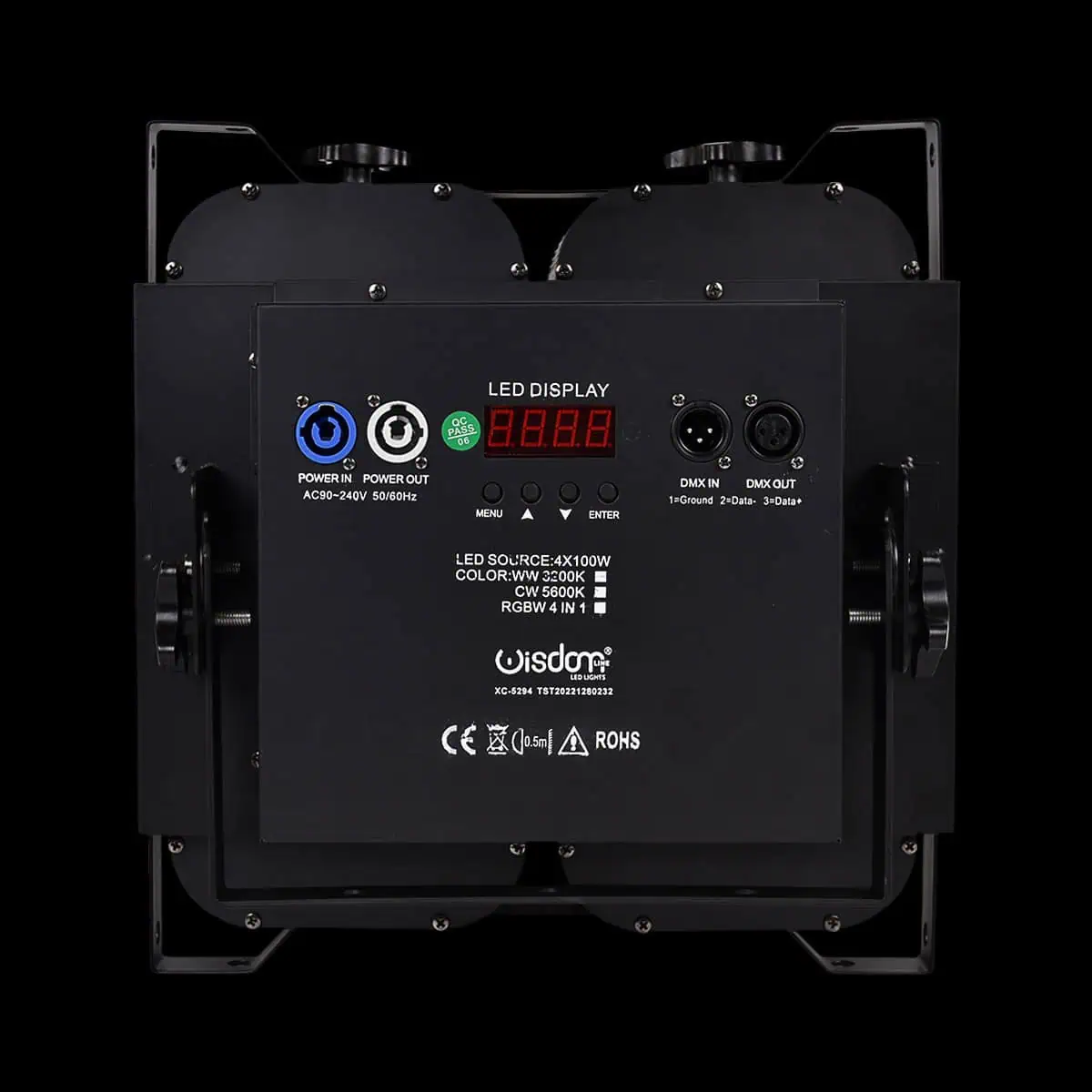 Accecatore LED COB 4x100W per eventi e spettacoli live, Illuminazione scenica professionale luce calda/fredda con DMX512, dimmer e strobo