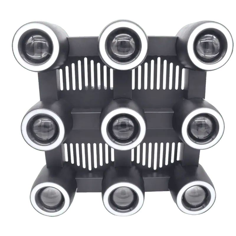 Il design dell’accecatore è stato studiato per unire robustezza, compattezza e leggerezza. Con dimensioni di 44 x 38 x 10 cm e un peso di soli 7 kg, il dispositivo è facile da trasportare, montare e installare, risultando particolarmente indicato per tour, spettacoli itineranti e installazioni temporanee. Il telaio in metallo nero è solido e resistente, capace di sopportare condizioni di utilizzo intenso e frequenti spostamenti.