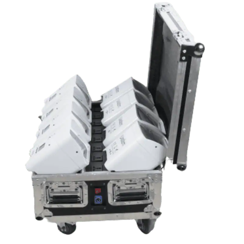 La struttura è realizzata in alluminio resistente, che offre robustezza, durata e un’eccellente dissipazione del calore. Nonostante la potenza, il dispositivo è leggero (4,5 kg) e compatto (31,5 x 15,5 x 8 cm), risultando pratico da trasportare e semplice da installare su qualsiasi struttura scenica.