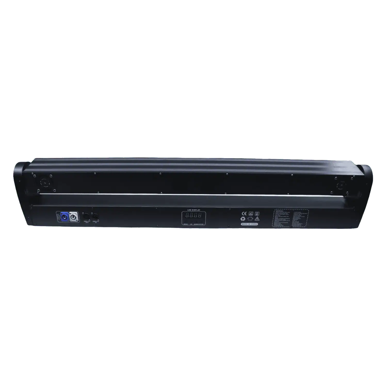 La barra supporta Modalità DMX, Master/Slave, Auto Run e Sound Control, permettendo all’operatore di scegliere la modalità più adatta alla situazione. In modalità Sound la barra reagisce alla musica, perfetta per DJ Set, club e serate live dove la luce segue ritmi energetici. La modalità Auto invece consente sequenze preimpostate ideali per installazioni permanenti come locali, showroom, mostre, bar, ristoranti e scenografie fisse. È ideale anche per service luci che necessitano di apparecchi pronti all’uso senza programmazione complessa, mantenendo comunque effetti visivi professionali.