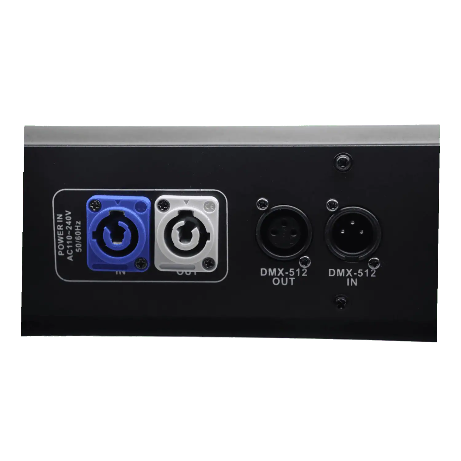 A livello di connettività, la barra dispone di Ingressi e Uscite DMX + PowerCon, permettendo il collegamento in serie senza bisogno di alimentare ogni dispositivo singolarmente. Questa caratteristica è particolarmente utile quando si installano più barre in linea, ad esempio per creare pareti luminose, effetti geometrici o giochi grafici sincronizzati. L’indice di protezione IP20 la rende adatta all’uso indoor, perfetta per club, eventi aziendali, sfilate di moda, teatri, fiere ed esposizioni.
