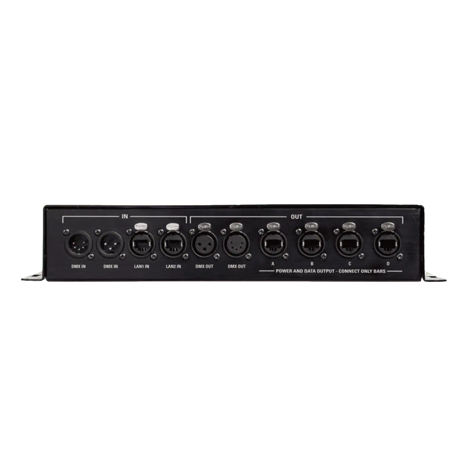 Il settaggio ed il controllo è affidato al “QPix Bar control box” che permette di pilotare un massimo di 16 barre offrendo due possibilità di controllo, DMX ed ARTNet, protocollo già a bordo del box.