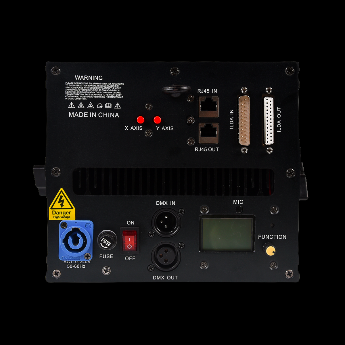 Il cuore tecnologico del Wisdom Line Pro è il suo sistema di scansione galvanometrico da 30KPPS, che garantisce movimenti fluidi, tracciamenti precisi e disegni laser nitidi anche durante sequenze ad alta velocità. Questo consente di proiettare forme complesse e animazioni con un livello di dettaglio elevato, rendendo ogni spettacolo visivamente coinvolgente e professionale.