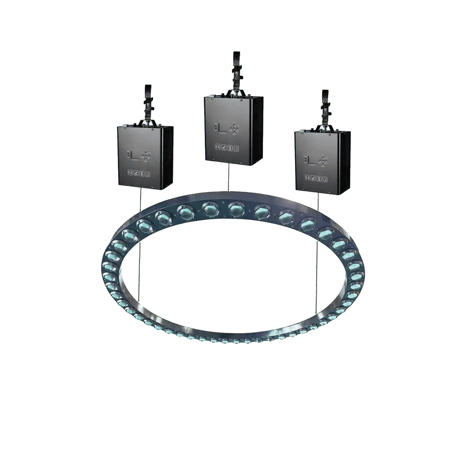 Il nostro halo lift pro kinekt ring anello luminoso è progettato per offrire effetti di luce spettacolari con un’illuminazione ambientale ad alta intensità per eventi di grandi dimensioni. Ring Halo Dotato di 54 LED RGBW ad alta luminosità, l’anello risulta essere perfetto per l’illuminazione di palchi e discoteche. Il suo movimento a spirale e la possibilità di sollevamento fanno sì che l’anello si adatti a una varietà di configurazioni e angolazioni, creando un’atmosfera coinvolgente. L’anello si muove grazie a 3 motori appesi in modo verticale permettendo una gestione dinamica della posizione, con possibilità di effetti di sollevamento e rotazione regolando l’altezza che si vuole ottenere (Max 7 metri) . Halo Ring Realizzato con materiali di alta qualità che garantiscono una lunga durata e una resistenza elevata anche in ambienti ad alta intensità di utilizzo. Oltre alla discoteca, è adatto per concerti, teatri, eventi aziendali e qualsiasi tipo di evento che richieda un’illuminazione scenografica.