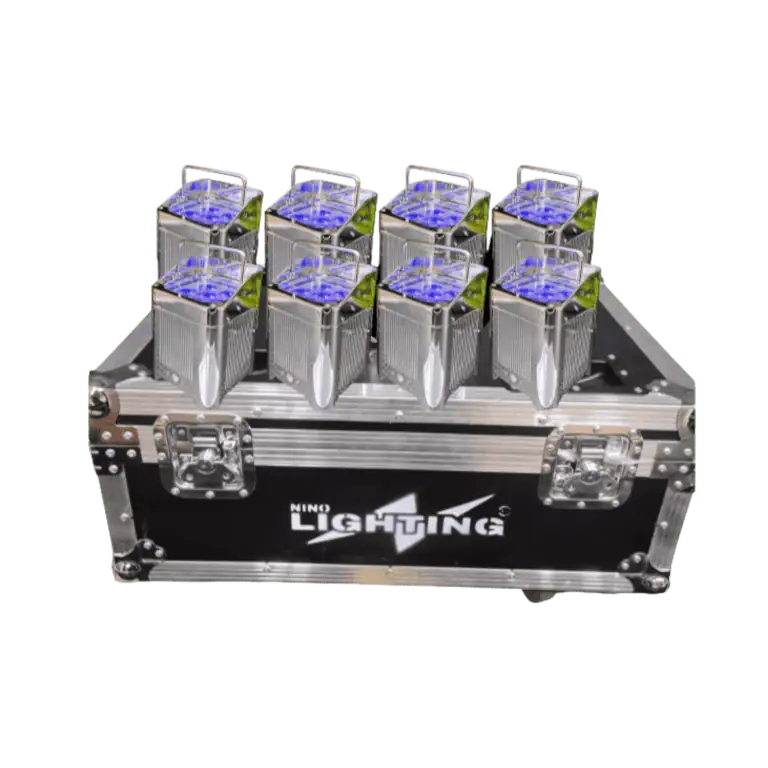 Baule FlightCase con 8pz Faretti CROMATI Smart Battery...