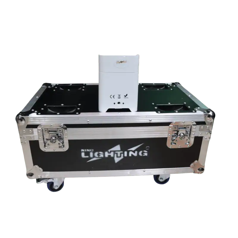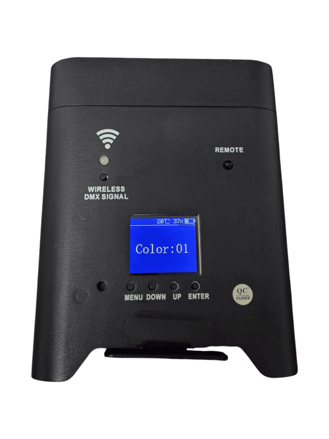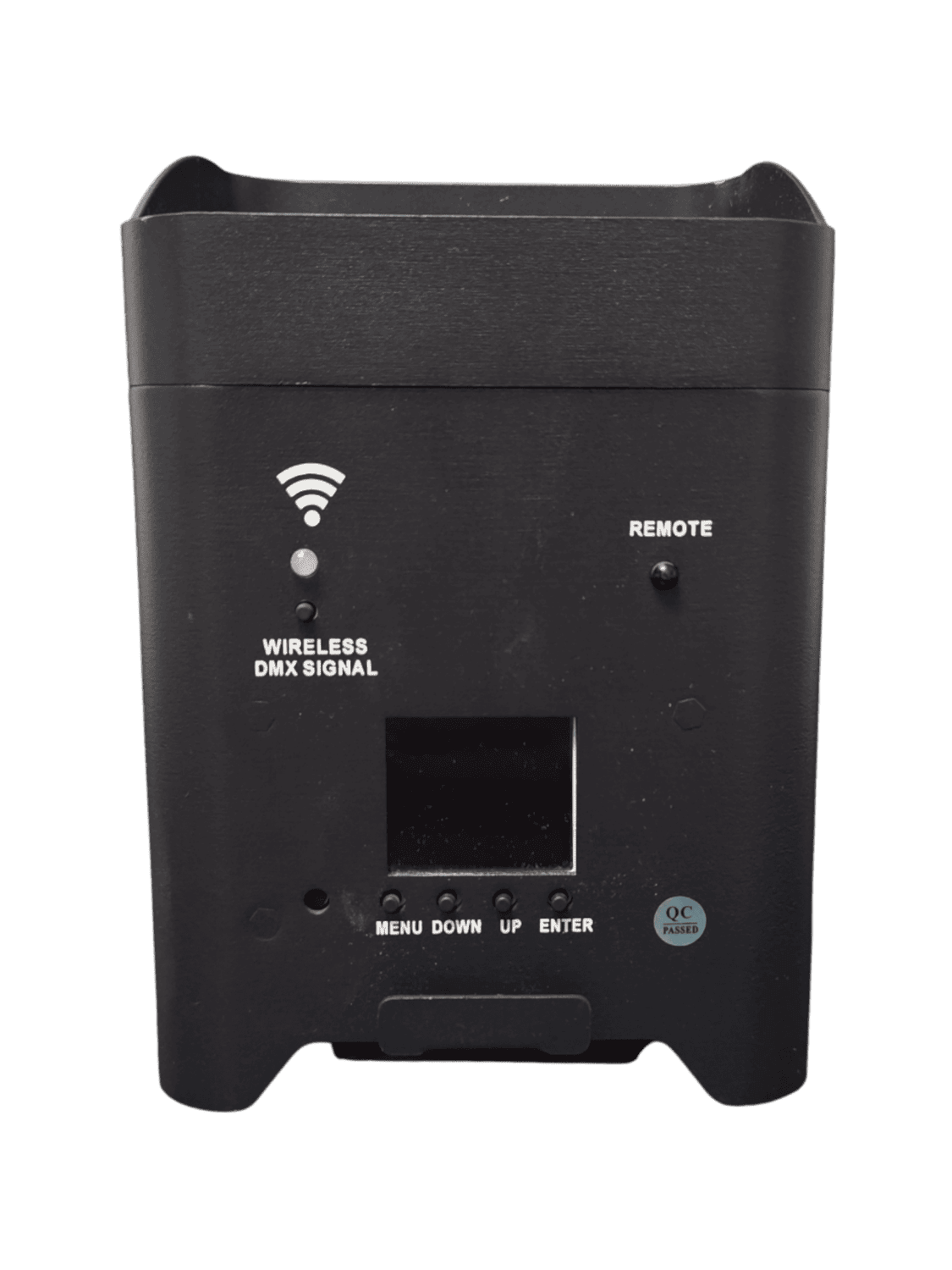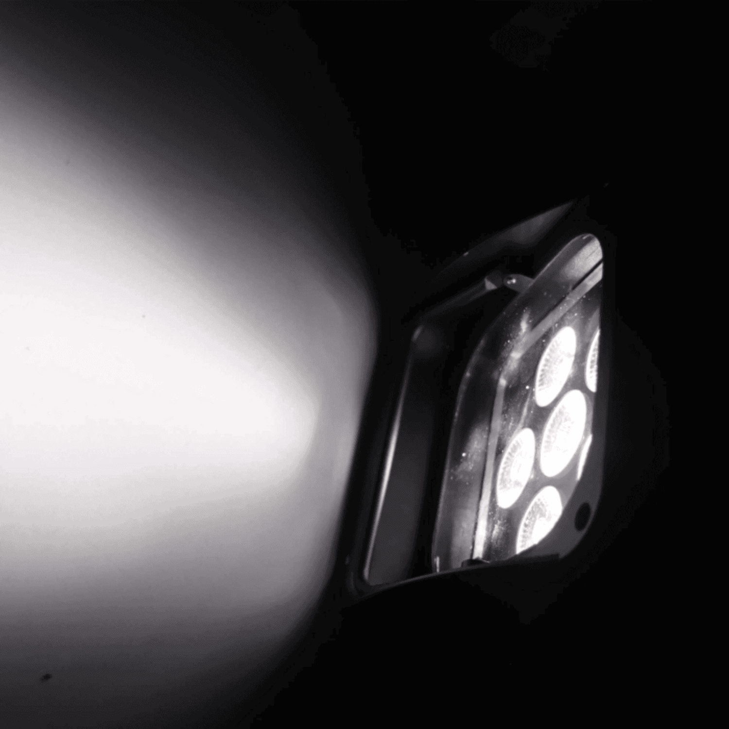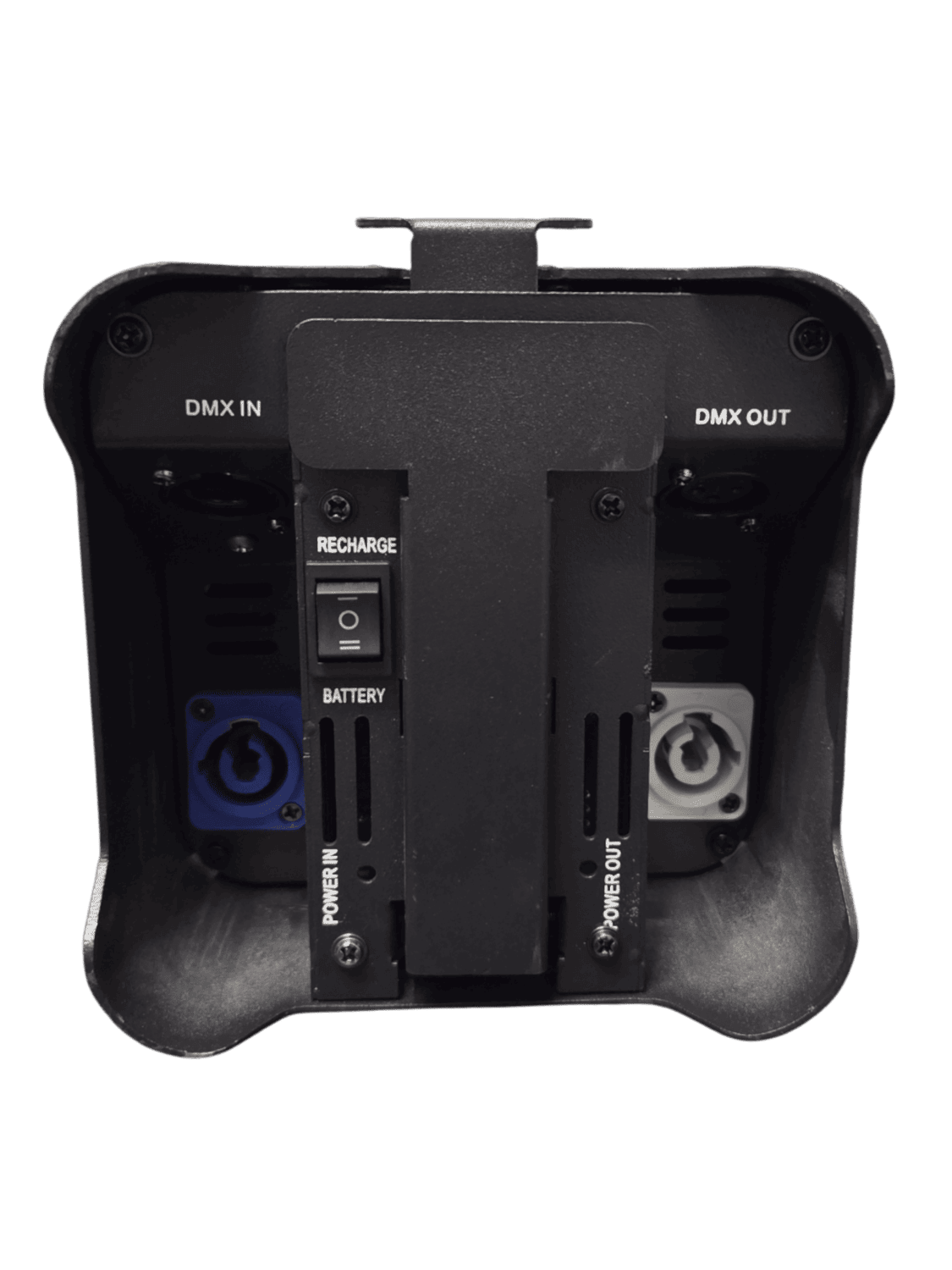 Faretto Smart Bat a batteria ricaricabile con controllo wireless da 6 luci LED RGBWAUV da 18W ciascuna. Solida struttura in alluminio e design moderno. Grazie alla sua scocca e alla pratica maniglia, nonché alle ridotte dimensioni, risulta molto robusto e semplice da trasportare. Nella parte inferiore si trova una staffa inclinabile per poter orientare il faretto una volta posizionato a pavimento. (Controllo tramite: wi-fi, DMX512 oppure in automatico o musicale.