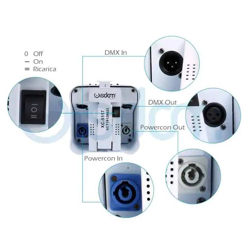 - Dmx: IN e OUT XLR 3 Poli
