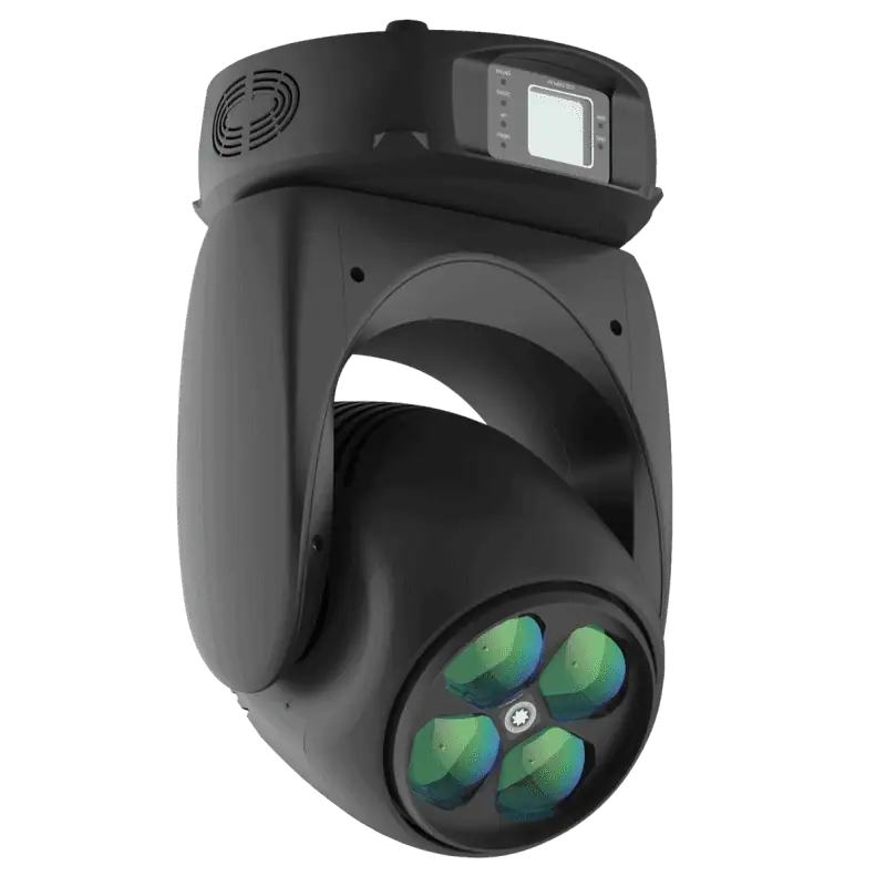 I movimenti Pan e Tilt, rispettivamente di 540° e 270° con risoluzione a 16 bit, risultano rapidi, fluidi e accurati, ideali per spettacoli dinamici e coreografie luminose complesse. Il tutto è gestito tramite un display LCD a colori, intuitivo e facile da navigare anche durante le fasi di setup rapido.