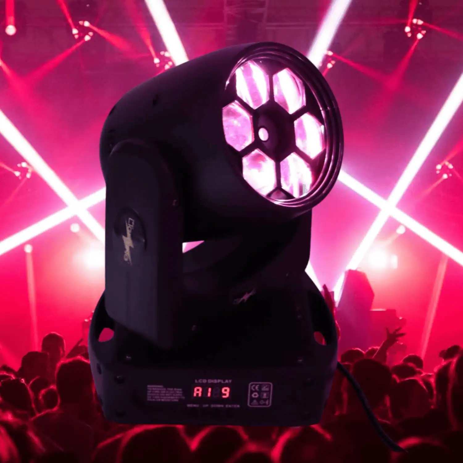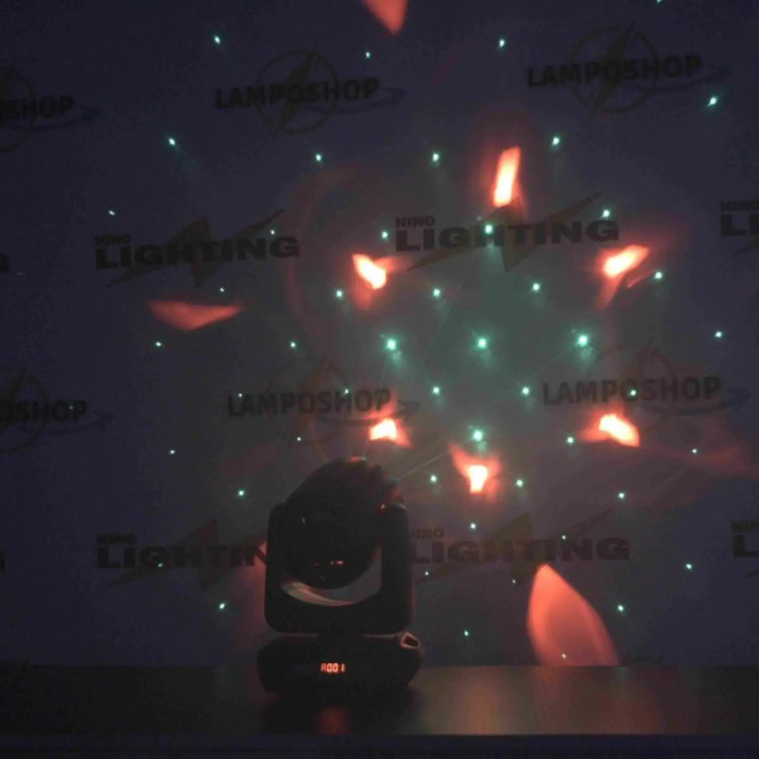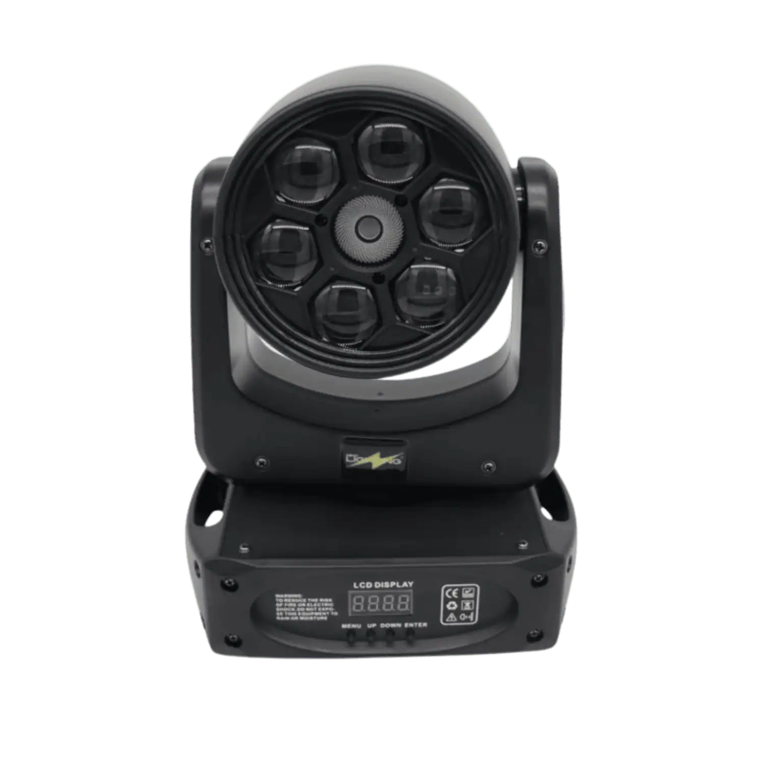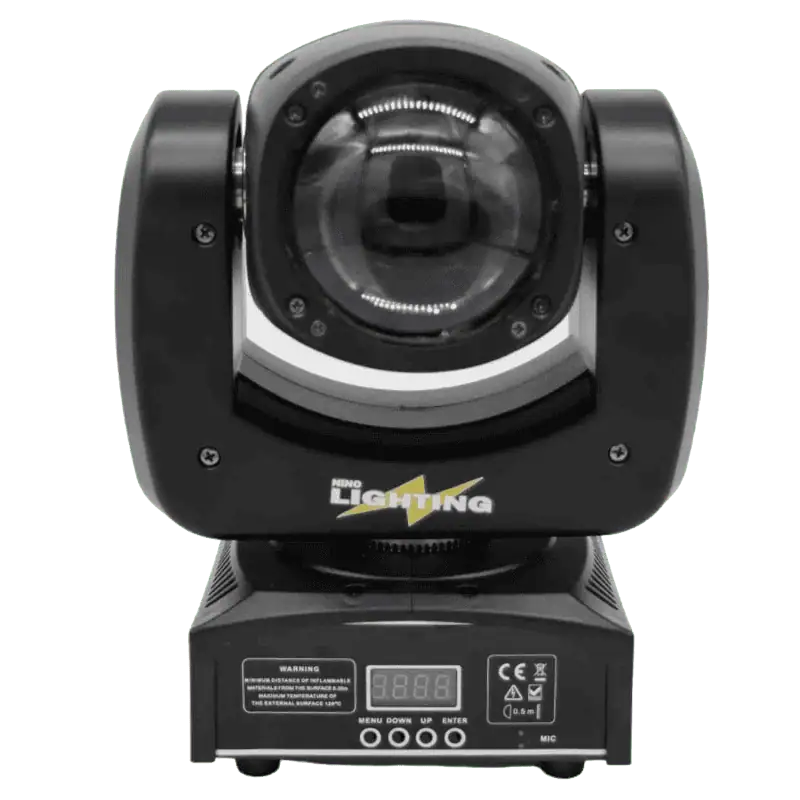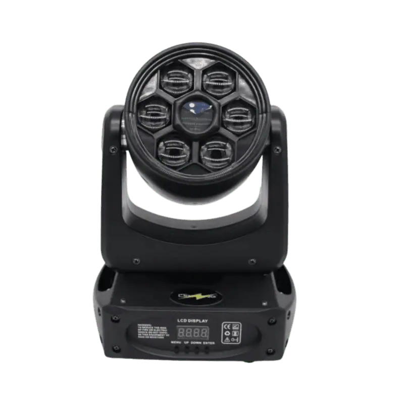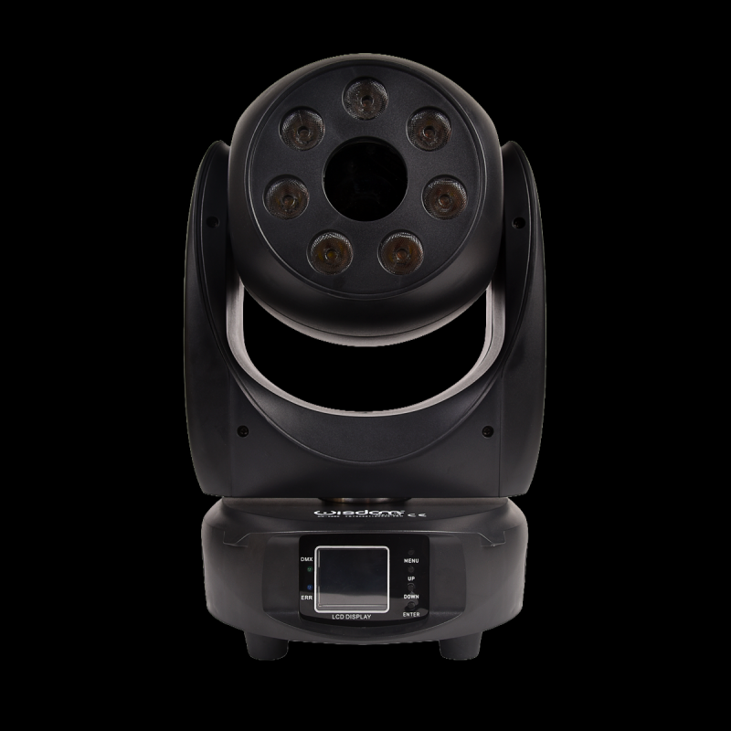 La mini testa mobile Bee Eye RGBW Può essere utilizzata da sola o in combinazione con una varietà di effetti luce, presentando un’illuminazione estremamente dinamica e di alta qualità creando facilmente effetti di luce con pattern sorprendenti con elevata tonalità di colori. Al centro troviamo un Laser potente e luminoso rotante colore verde.