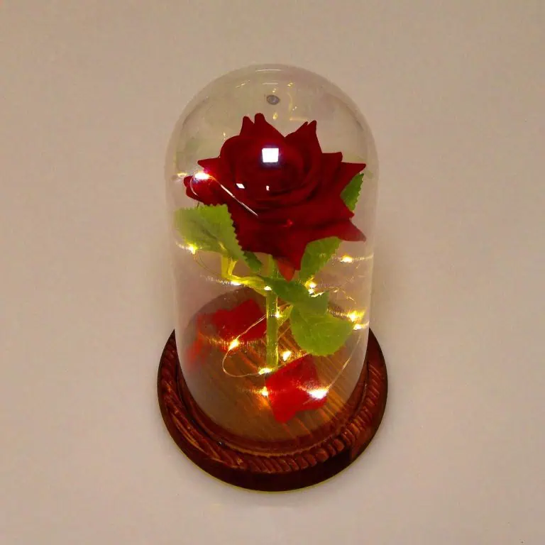Campana decorativa di vetro con rosa eterna incantata Luce LED calda