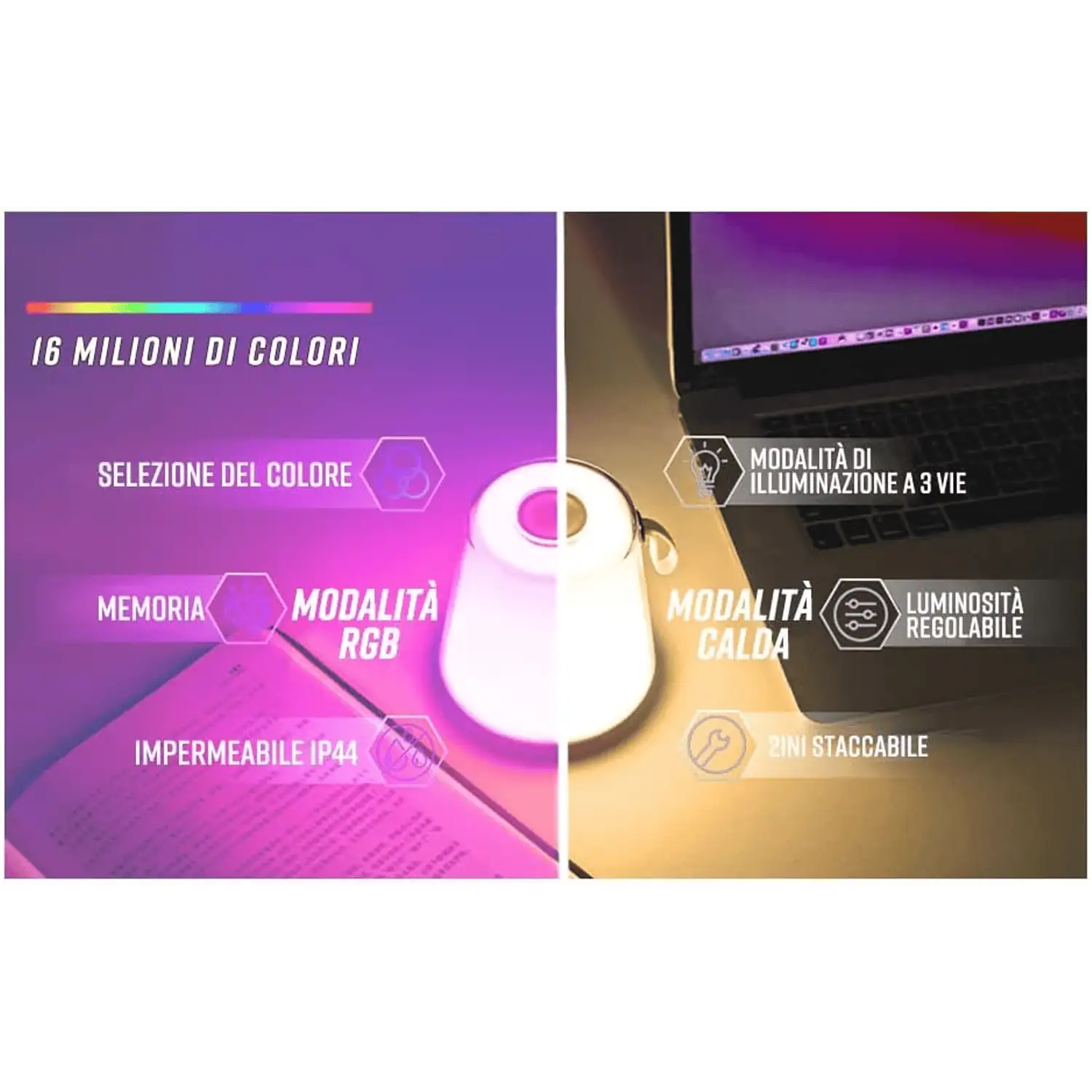 • Tonalità della luce: RGB da 3000K – 20000K