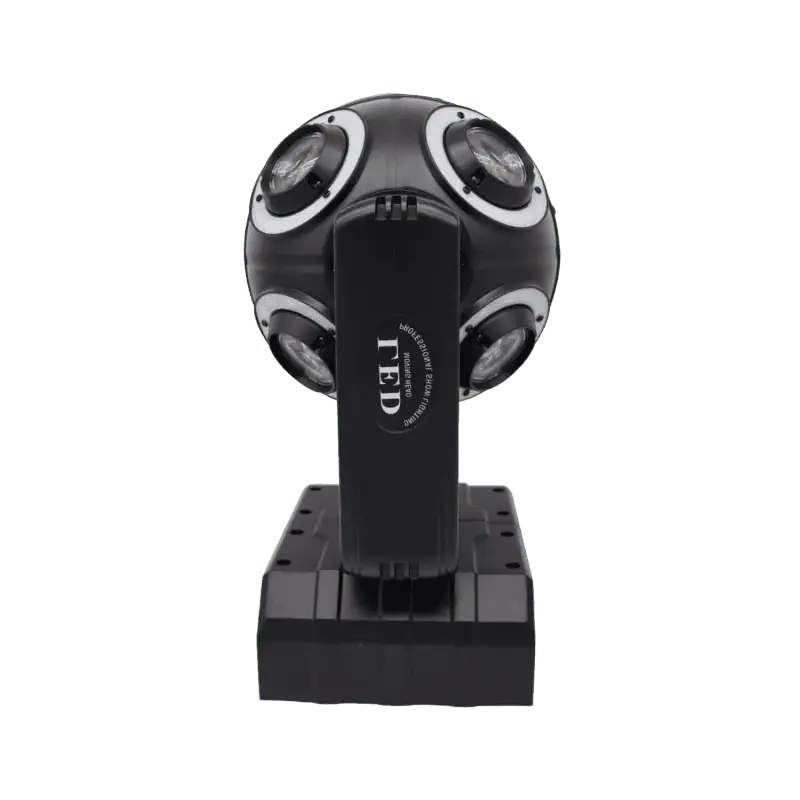Uno dei punti di forza di questo modello 2024 è la ruota colori con effetto Rainbow Color, che permette transizioni cromatiche fluide e arcobaleno ad alto impatto visivo. L’integrazione del prisma rotante a 8 facce con effetto specchio diamantato consente di moltiplicare il fascio luminoso, creando aperture scenografiche ideali per momenti clou dello spettacolo, drop musicali o performance live.