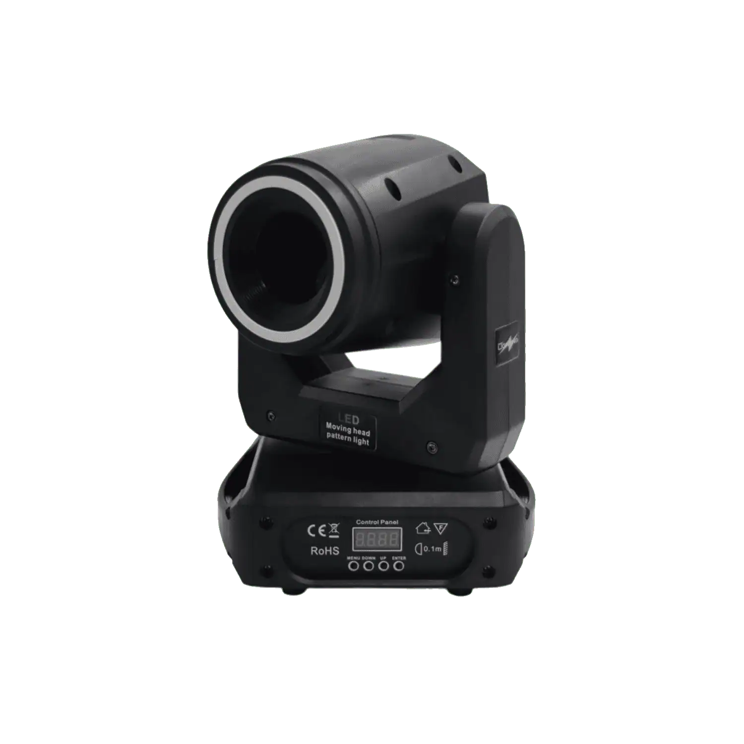 Mini Testa Mobile Spot LED 150W con Anello Ring Light colori RGB. All’ interno della Testa mobile troveremo la ruota colori più luce bianca e Prisma rotante a 6 facce rendendo magico e unico il tuo spettacolo. Canali di controllo centralina dmx Ch14, inoltre le altre modalità sono: Master slave, Ritmo di musica, Controllo di esecuzione automatica. Ingressi DMX IN & OUT, alimentazione VDE. Spot di dimensioni ultra compatte, ma di grandi pre stazioni. Garantisce consumi notevolmente ridotti e movimenti veloci, fluidi e precisi. Grazie alle dimensioni ridotte puoi installarla su una parete, appenderla con un gancio o semplicemente appoggiarla a terra. La Mini Testa Mobile Spot 150w è adatta come illuminazione professionale per: Eventi, Teatri, Luce scenica etc.