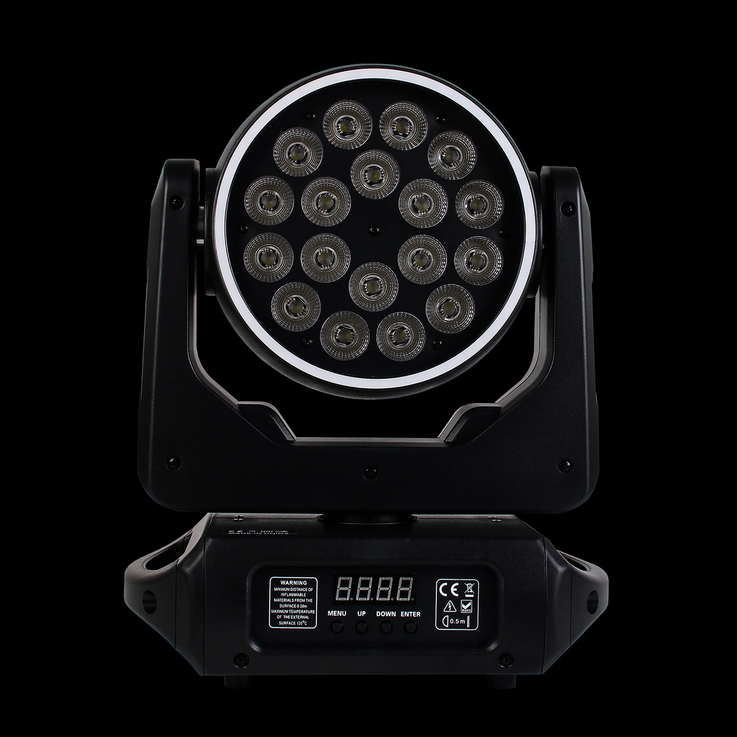 Il Ring LED circolare integrato aggiunge un ulteriore livello creativo alla scena, introducendo effetti luminosi dinamici e moderni. Il ring può essere utilizzato come elemento decorativo indipendente o in combinazione con il wash principale, creando giochi di luce coinvolgenti che valorizzano qualsiasi ambiente, dal palco ai locali notturni.