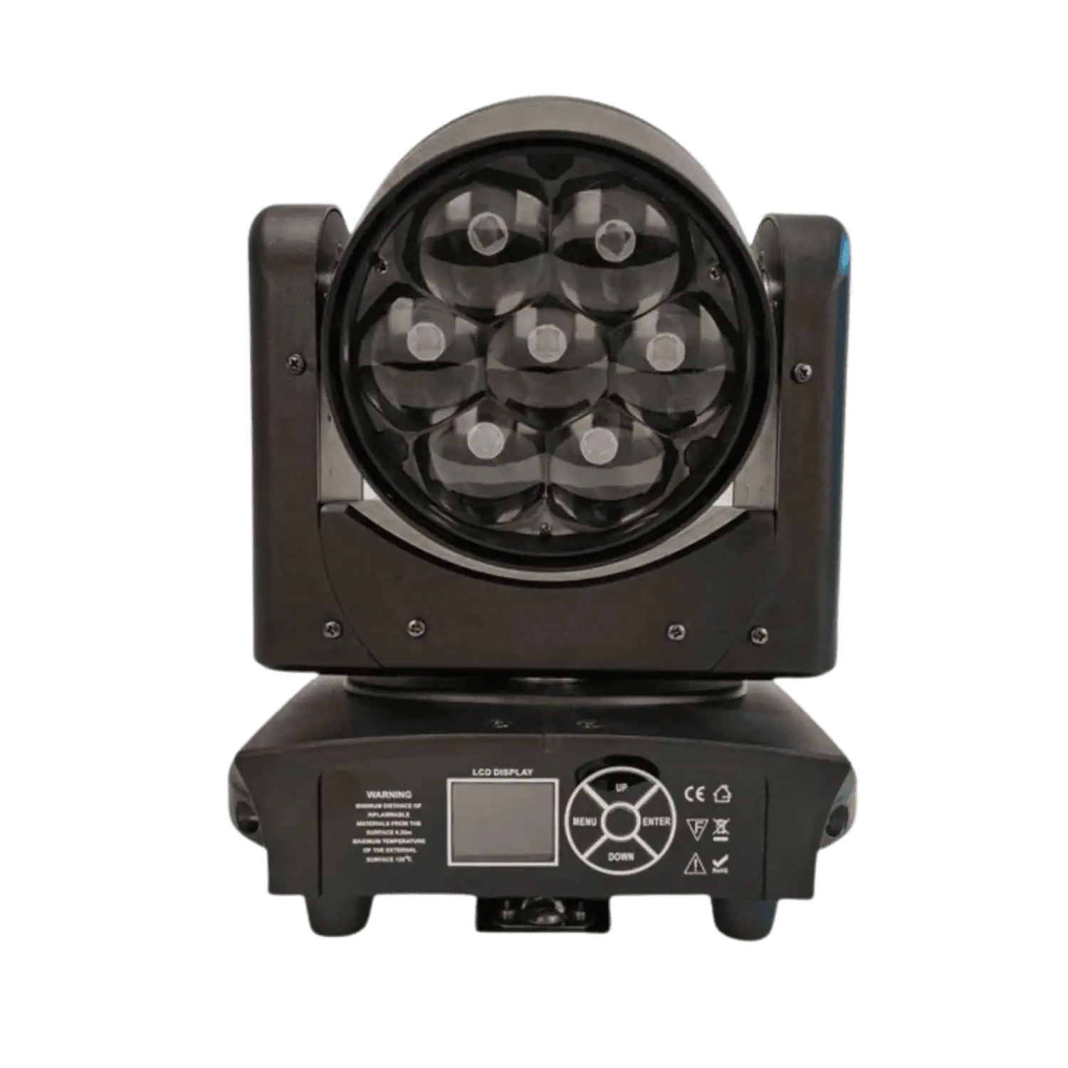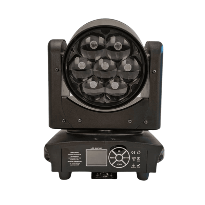 Testa Mobile WASH SOPHIE LED 7X40W è una potente ma economica WASH a testa mobile. Con il suo Zoom Beam controllato da DMX e un angolo del fascio di 5° a 60° crea meravigliosi effetti di colori. Il Moving Wash ha un totale di 7 LED da 40 Watt. Grazie ai colori di base rosso, verde, blu e bianco (RGBW) nonché a una miscelazione dei colori infinitamente variabile, forniscono colori perfetti e forti. Un Dimmer regolabile e gli effetti stroboscopici consentono spettacoli di luce creativi e in continua evoluzione. I singoli pixel vengono controllati tramite DMX da 11 a 17 canali. Display LCD per controllare i parametri. Modalità disponibili: Automatica, controllo DMX, Controllo a ritmo di musica. SOPHIE LED è perfetta per eventi, bar, discoteche, teatri, concerti, etc.