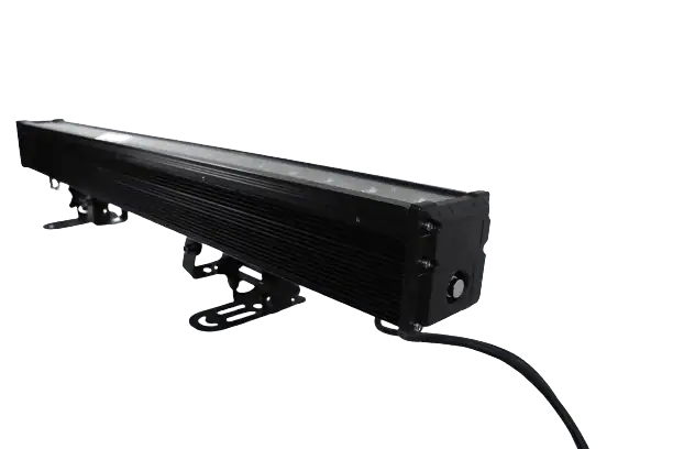 LED Bar RGBW-A HighPower Waterproof da 15 W controllabili individualmente. Le ottiche delle lenti di alta qualità offrono una straordinaria miscelazione dei colori senza ombre di colore. Possibilità di applicazione dall’architettura al tour operation, i piedini regolabili garantiscono un allineamento ottimale senza prendere in considerazione il percorso di rinforzo delle capriate. Pannello a sfioramento sulla parte anteriore per regolare le funzioni della led Bar.