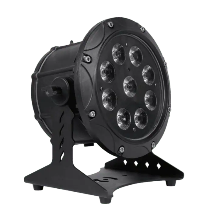 Il faro a batteria LED 9×6 IP65 RGBW-A-UV rappresenta un salto qualitativo nell’illuminazione per esterni, combinando tecnologia avanzata e design robusto per offrire un’esperienza di illuminazione senza precedenti.  La regolazione della luminosità, la variazione dei colori e la programmazione degli effetti luminosi sono facilmente gestibili tramite un telecomando wireless, offrendo una grande libertà nella creazione di scenari luminosi personalizzati. L’uso di LED RGBW-A-UV 6 in 1 è un altro punto di forza di questo dispositivo. Questi LED di alta qualità consentono di ottenere una vasta gamma di colori e effetti di luce, dallo spettro completo alla luce UV, che crea effetti fluorescenti sorprendenti. In termini di specifiche tecniche, il dispositivo offre una potenza di 54W con un consumo di 70W, operando a una tensione di alimentazione compresa tra 100 e 240V AC. La frequenza di 50/60 Hz, combinata con un angolo di illuminazione di 18°, assicura una copertura luminosa ottimale. Per quanto riguarda la connettività, dispone di connessioni PowerCon In/Out e DMX In/Out 3 Pin XLR, offrendo versatilità nelle configurazioni di installazione. Il controllo DMX512, insieme alle modalità Master/Slave, Wireless DMX e controllo tramite suono, rende questo dispositivo estremamente flessibile e adattabile a una varietà di scenari di utilizzo. I canali DMX possono essere impostati su 6 o 10, a seconda delle esigenze specifiche dell’utente. Inoltre, il dimmer elettronico con una regolazione da 0 a 100% e lo strobo con velocità regolabile da 0 a 20 flash al secondo offrono ulteriori opzioni per personalizzare l’esperienza di illuminazione. La durata della batteria è un altro aspetto notevole, con una vita media di circa 500 ricariche e una durata di funzionamento di circa 3,5 ore. Il tempo di ricarica della batteria è di circa 6 ore, rendendo il dispositivo pronto per un uso prolungato con una minima interruzione.