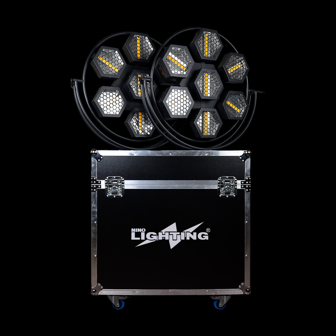 Uno degli aspetti più apprezzati della Coppia Mini Port Flower è la possibilità di gestire ogni modulo esagonale in modo indipendente tramite controllo DMX512. Questo permette di creare effetti personalizzati, giochi di luce sincronizzati e transizioni cromatiche fluide, adattabili a ogni tipo di performance.