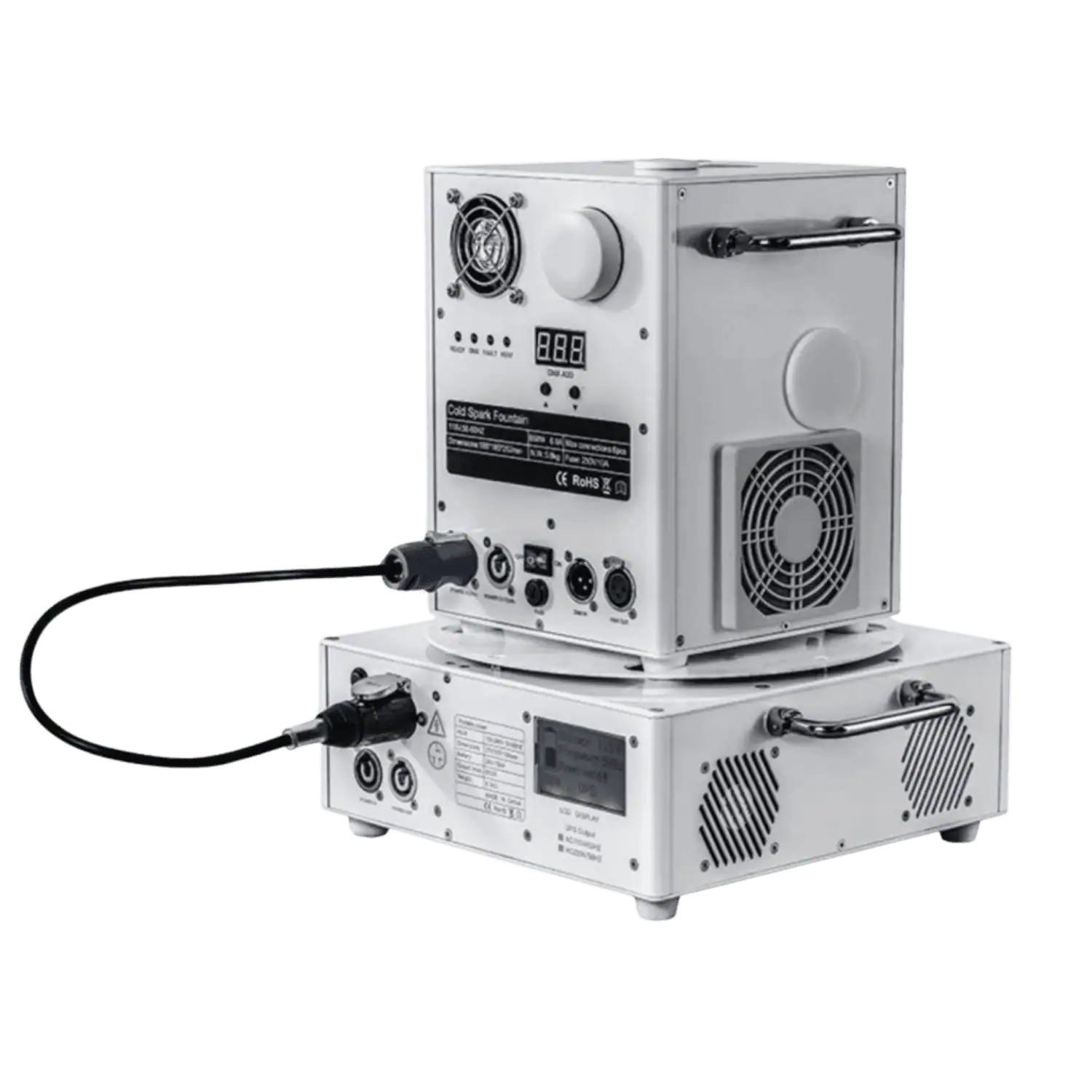Novità solo da Lamposhop! Batteria ricaricabile da 900w portatile per le Spark fontana scintilla fredda, con impugnatura maneggevole grazie alle 2 maniglie laterali, batteria litio ricaricabile tempo di ricarica 5-6 ore durata di utilizzo: circa 3-4 ore. Alimentazione entrata e uscita, e collegamento dmx. Perfettamente indicata per: matrimoni, spettacoli, feste, eventi.
