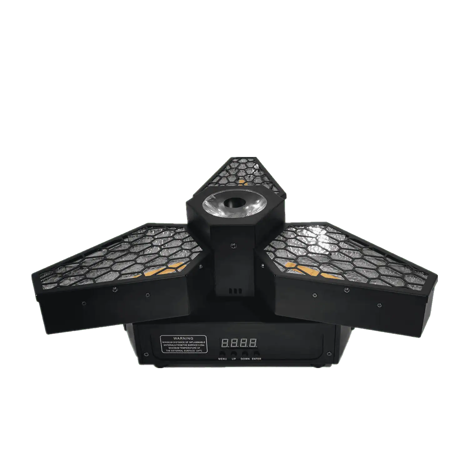 Il movimento rotante a 360° rappresenta uno dei punti di forza principali del prodotto. La rotazione fluida consente di distribuire la luce in modo dinamico nello spazio, creando effetti scenici continui senza necessità di teste mobili tradizionali. Questo lo rende particolarmente efficace per installazioni scenografiche, palchi DJ, club e ambientazioni immersive.
