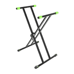 Supporto per tastiera ideale per chi cerca stabilità e robustezza durante lo spettacolo. Il supporto è dotato di un asta a forma  X doppio, può sostenere fino a 65 kg, garantendo sicurezza anche con strumenti più pesanti. L’altezza è facilmente regolabile fino a 90 cm grazie alla funzione di apertura e chiusura rapida, offrendo comfort e versatilità durante l’uso in maniera pratica, comoda e veloce. La struttura del supporto tastiera si presenta in acciaio con rivestimento nero a polvere assicura durabilità e resistenza nel tempo, mentre le giunture rinforzate e le estremità antiscivolo contribuiscono a mantenere la stabilità e la sicurezza durante l’utilizzo.