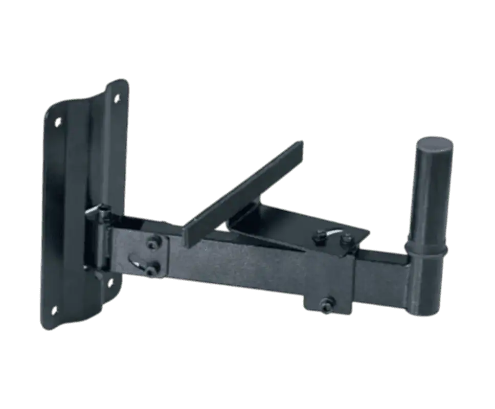 Supporto robusto in acciaio tubolare a parete per casse acustiche. Con snodo direzionale che permette una regolazione completa, sia verticale che orizzontale.