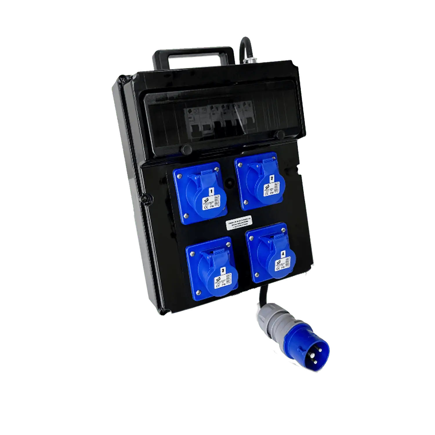 Quadro elettrico portatile in policarbonato antiurto con scatola di distribuzione pratica, robusta e leggera, dotato di maniglia superiore per il trasporto con case impilabile. Vano interruttori con sportellino trasparente, prese protette individualmente. Perfetta ripartizione dei carichi. Ideale per applicazioni live e stage.