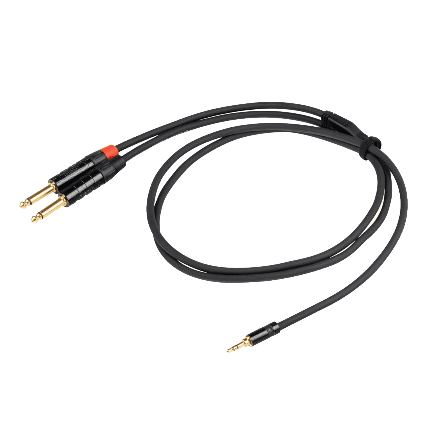 Cavo audio per strumenti professionali con spine in oro, ideale per PC o scheda audio, i jack mono sono contraddistinti da anelli color rosso/nero